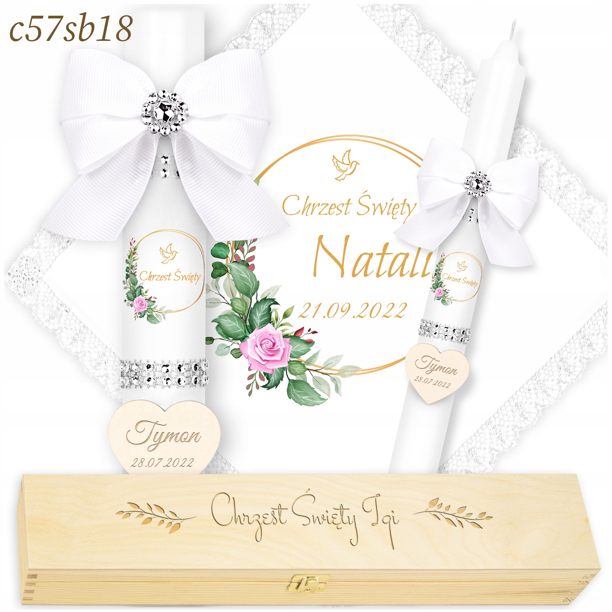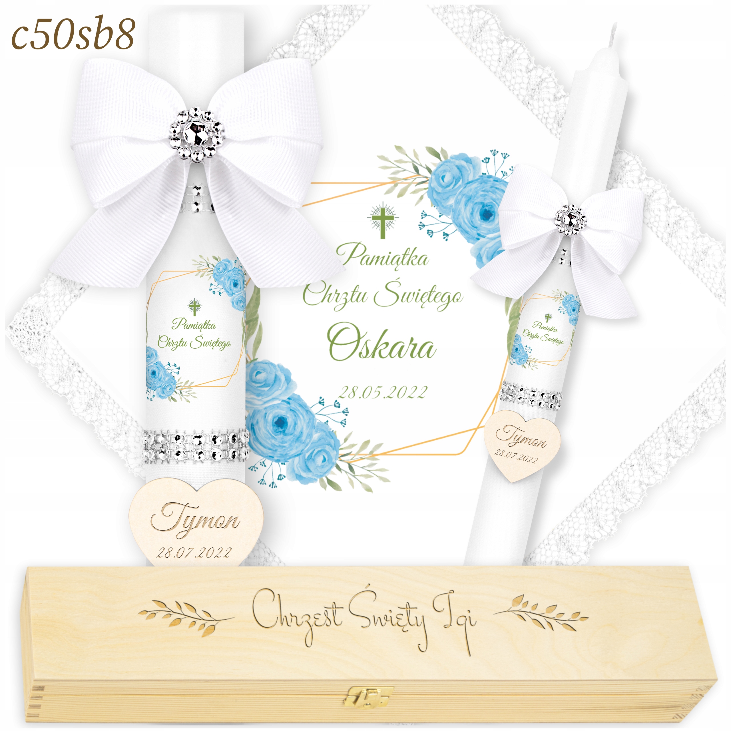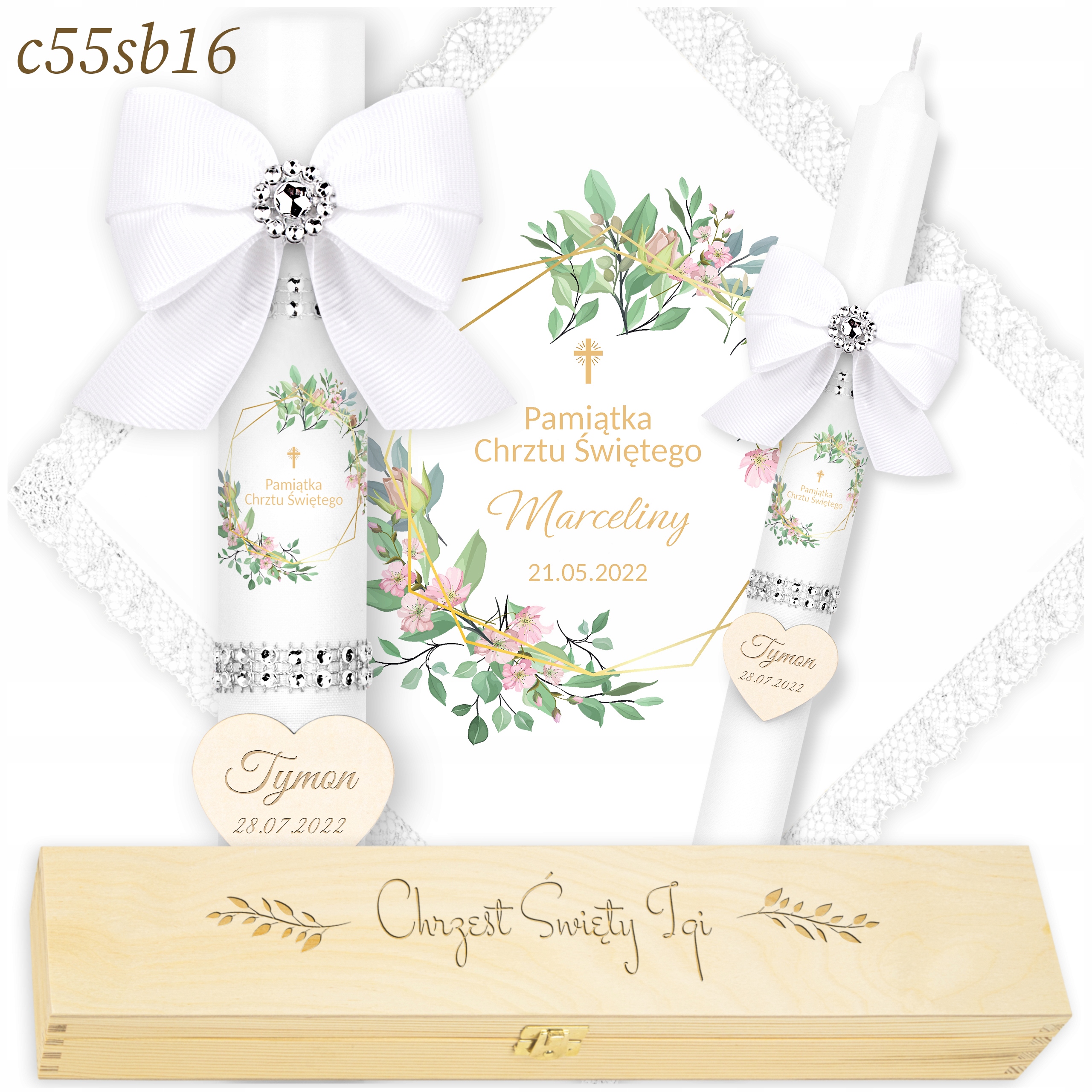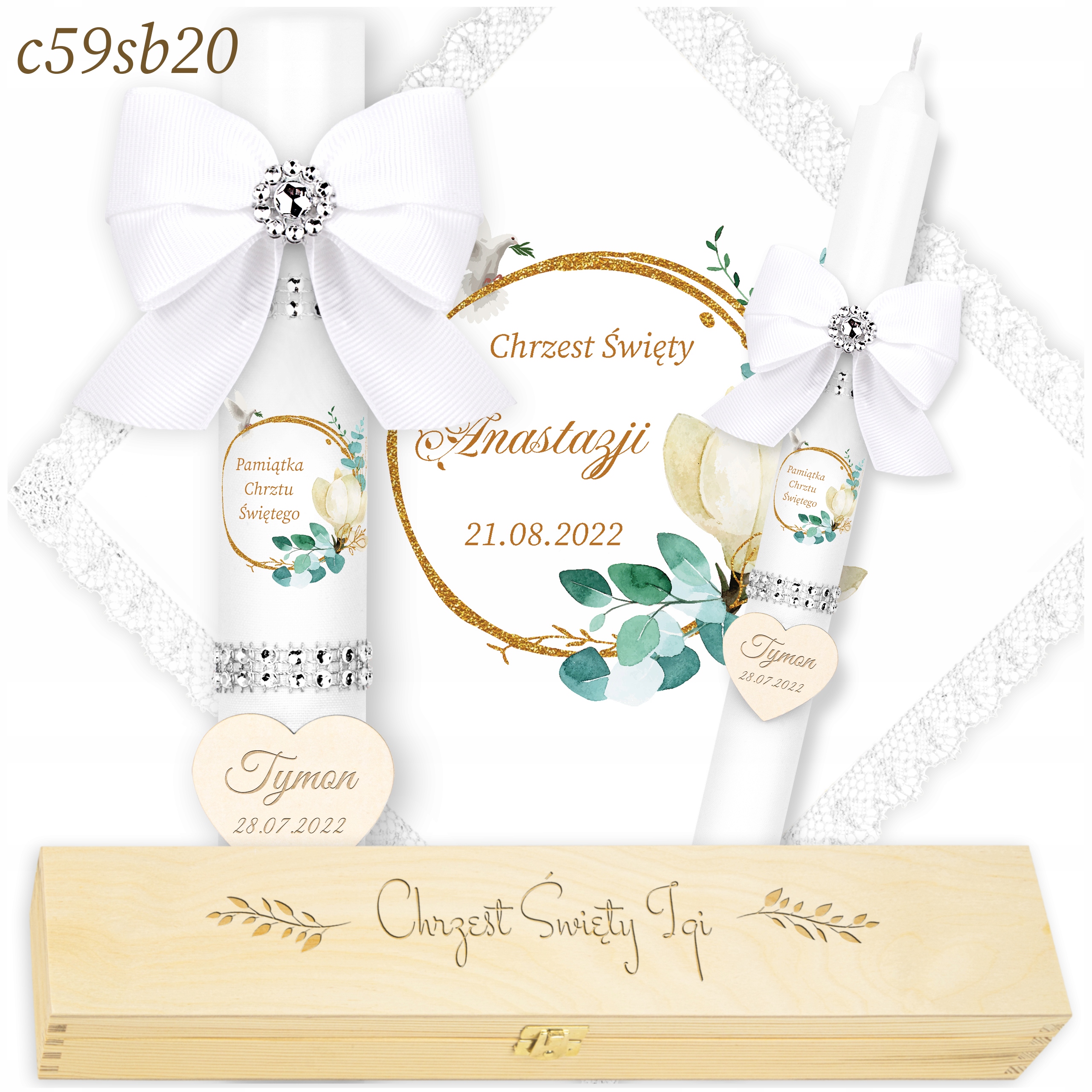Хрестильне вбрання та свічка - ХРЕСТИЛЬНА СВІЧКА + ІМЕННА КОРОБКА - гравіювання
