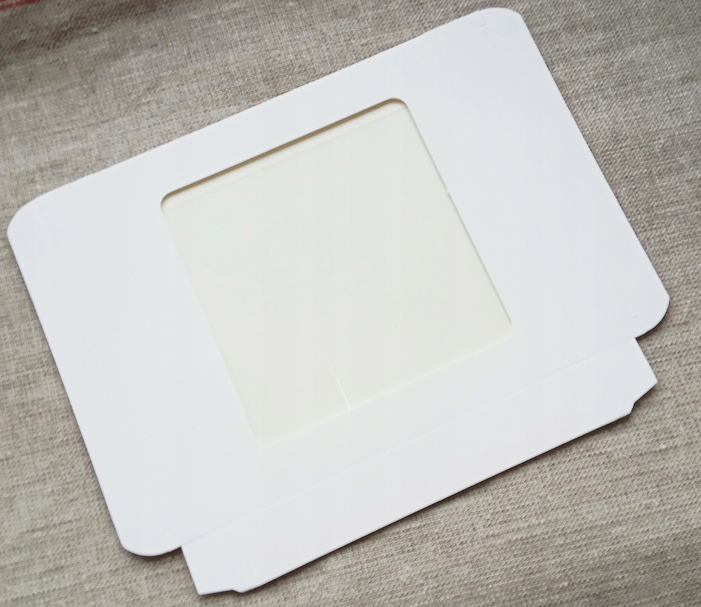 Коробка з картону, з віконцем, в якому фольга наклеєна.