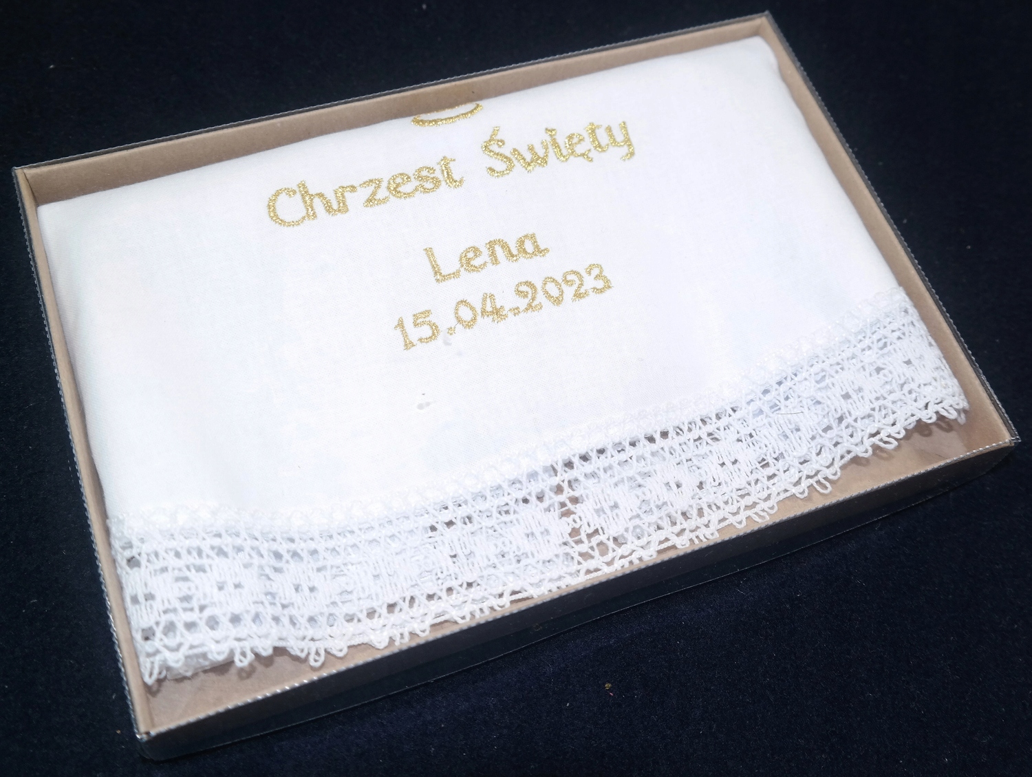 Хрестильний халат, ВИШИВКА ім'я імена дата + КОРОБКА