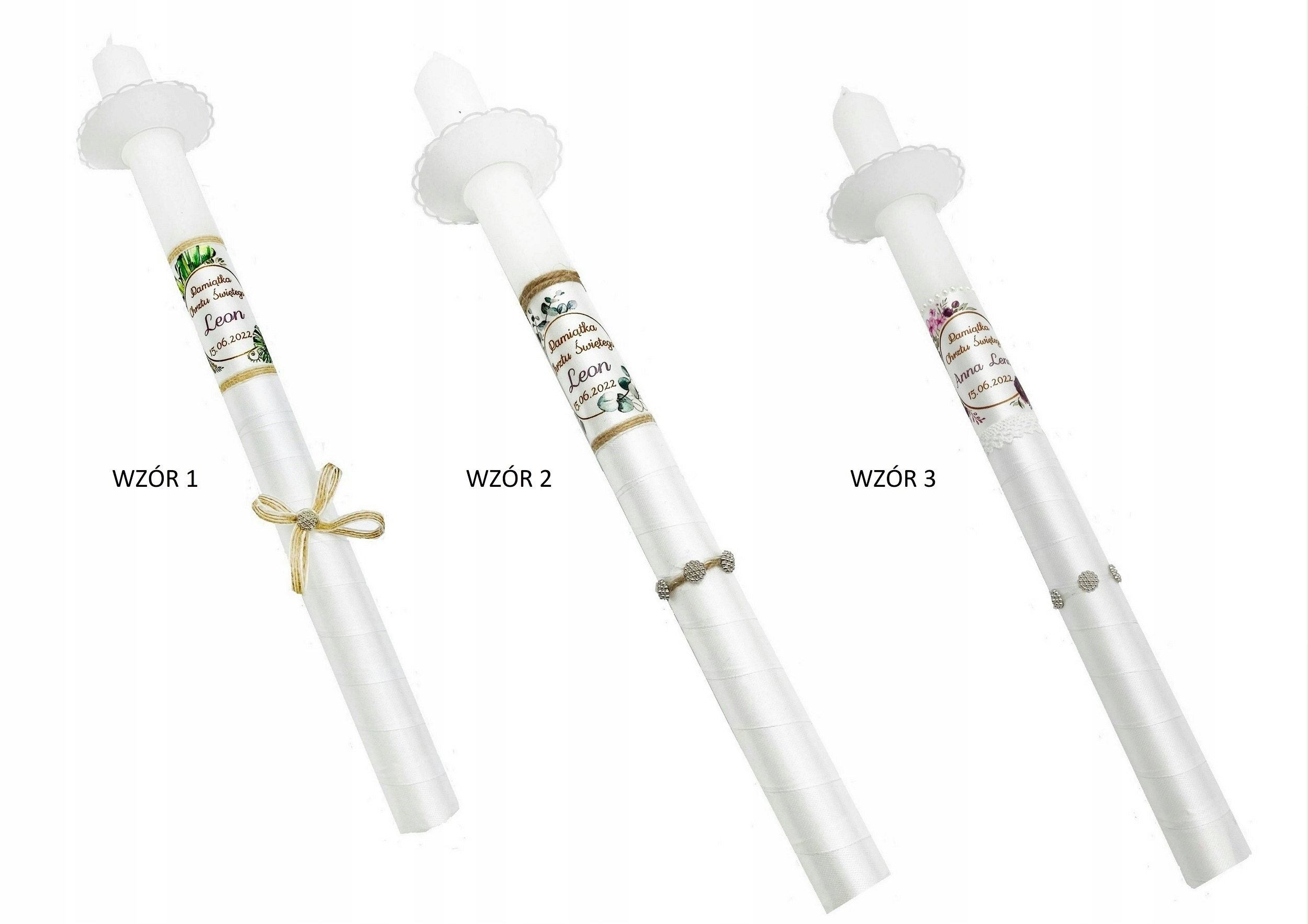 Будь-який візерунок/декор свічки можна поєднувати з будь-яким декором. Схеми бохо принту у випадку декорування свічками візерунок 1,2,3 адаптуються до малюнка тканини, яка буде обрана для створення цілісного комплекту. Змінюється лише оздоблення свічки. На дизайнах 4 і 5 тільки напис "Сувенір на хрещення" та ім'я/дата дитини.