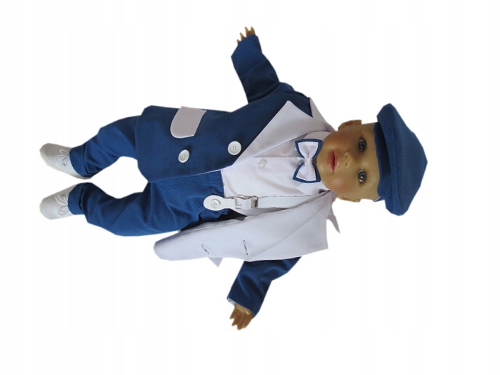 СИНІ ШТАНИ - З КОСТЮМНОЇ ТКАНИНИ, ЗРУЧНІ Гумка вшита в пояс.СИНЯ КАПЕЛЮШКА - БІТКА ЗАДНЯ ЧАСТИНА КАПЕЛЮХА ВІДЛИВНА, ОБШИТАНА БІЛОЮ ПІДДІБКОЮ.СОРОЧКА У ВИГЛЯДІ БОДІ, БІЛИЙ ДОВГИЙ РУКАВ НА ГУДСИКАХ. БІЛІ ПІДСТАВКИ - ЗАСТІБКАЮТЬСЯ НА ГУДСКИ, ПІДСТАВКИ МАЮТЬ РЕГУЛЮВАННЯ, ЗАКІПКА ШКІРА.СИНЯ КУРТКА З БІЛИМИ ЕЛЕМЕНТАМИ - КОСТЮМ З ТКАНИНИ. НА ГУдзИКАХ, НА ПІДШИВЦІ.СИНЬО-БІЛА КРАВАТКА ЗІ СТРІЧКОЮ.МОДЕЛІ: № 4