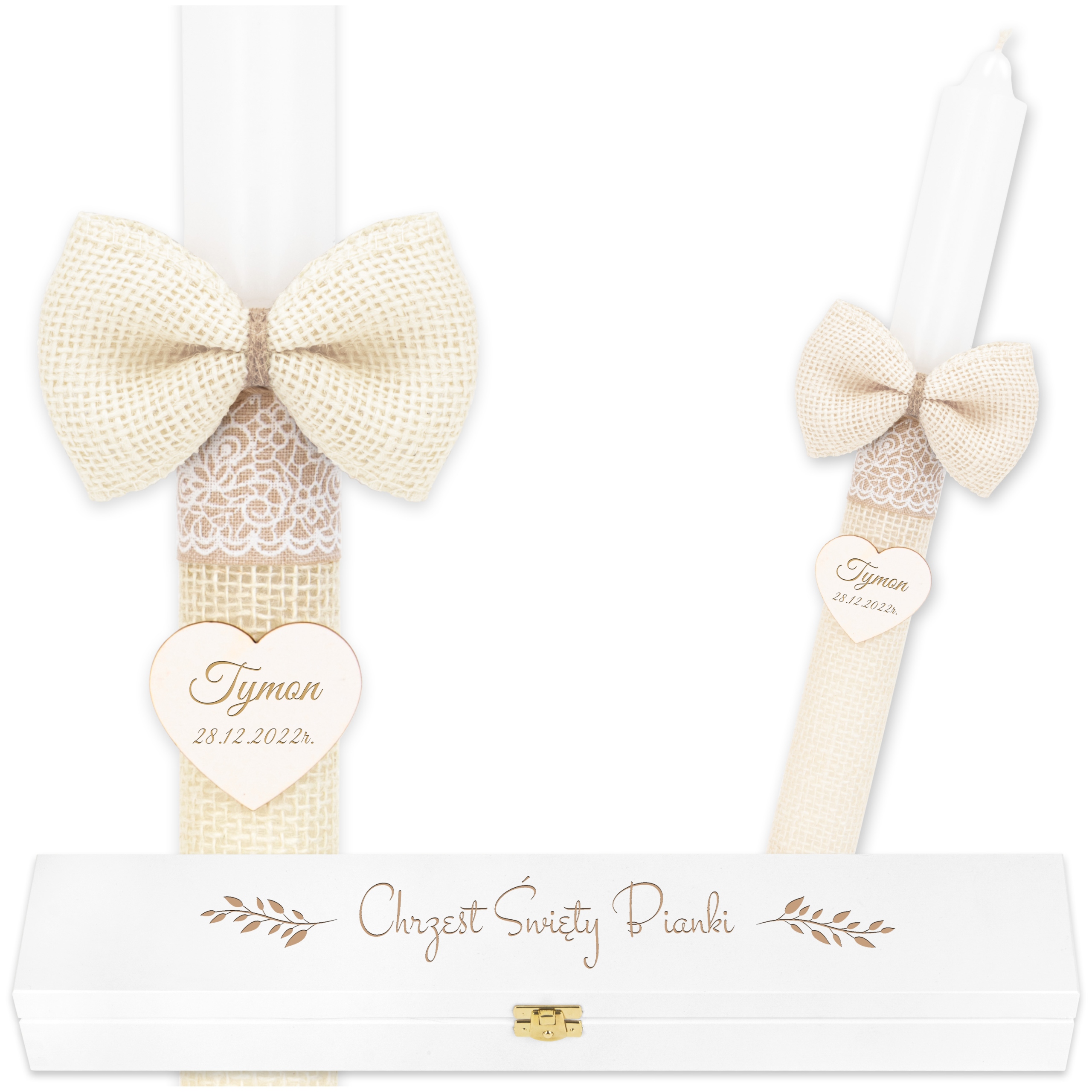 СВІЧКА ДЛЯ ХРЕСТИННЯ + ДЕРЕВ'ЯНА СКОРОЧКА Персоналізована свічка для хрещення - ГРАВІЮВАННЯ