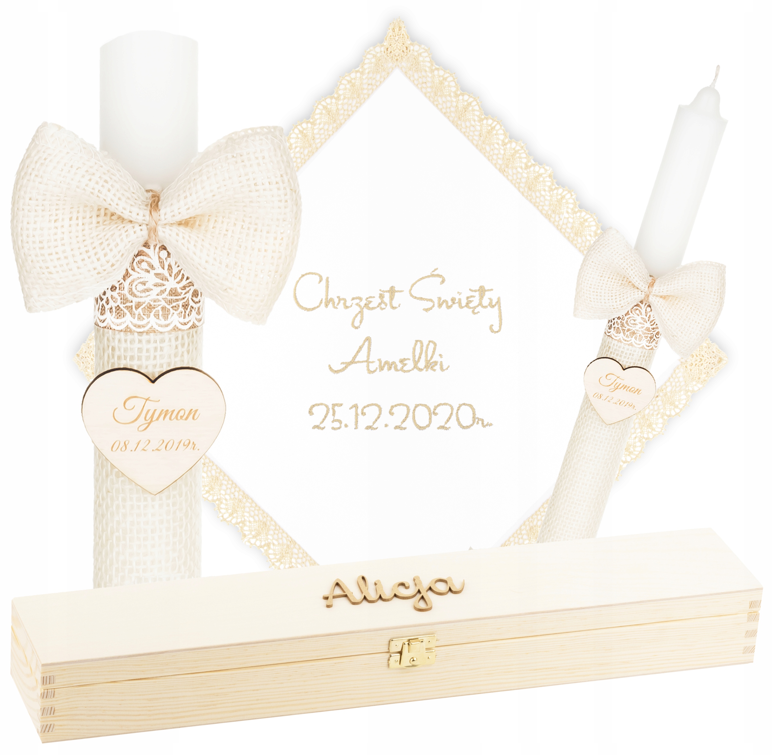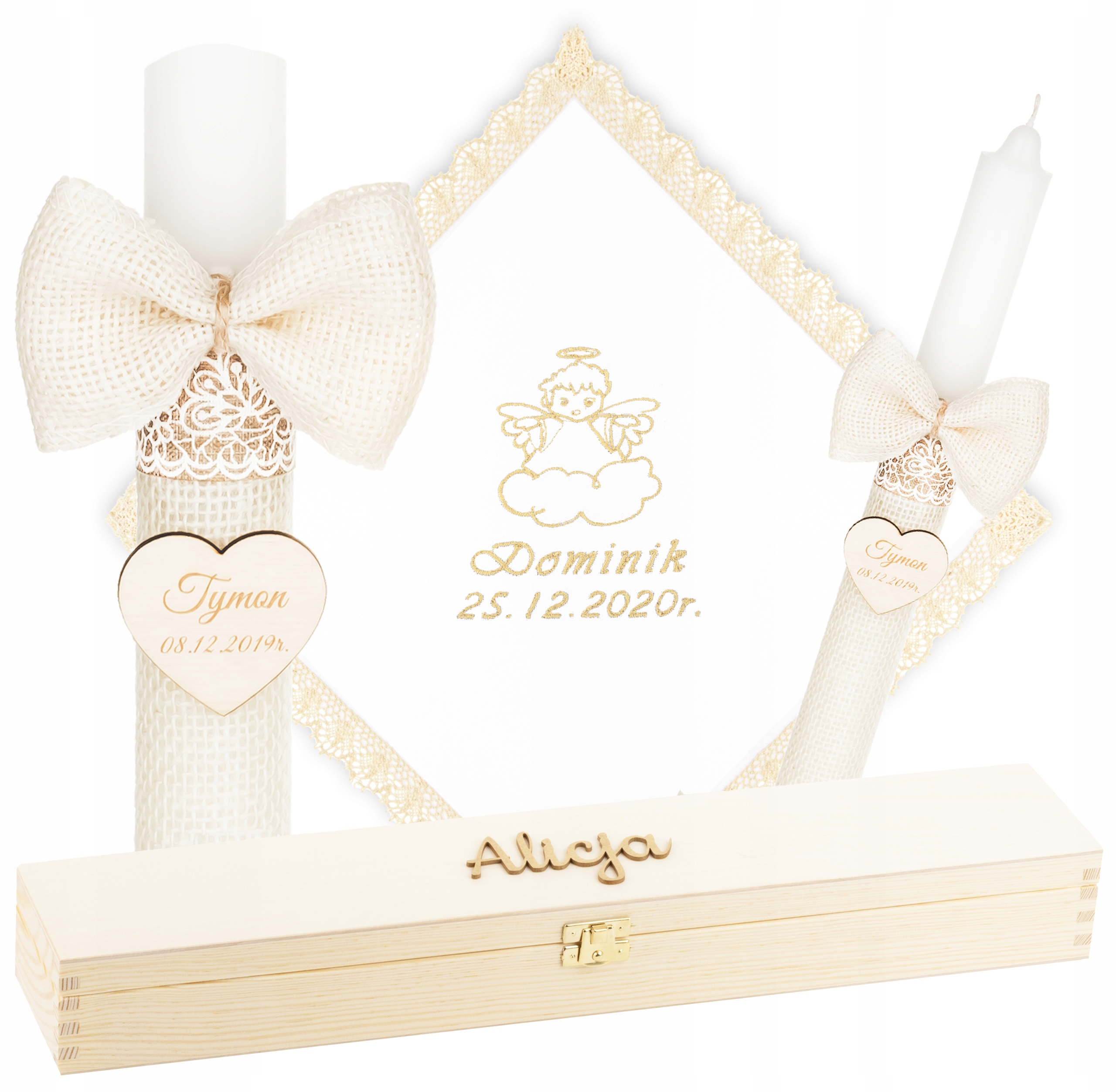 ХРЕСТИННА СВІЧКА + СКОРОБКА ВИШИВАНИЙ ХРЕСТИННИЙ ОДЯГ