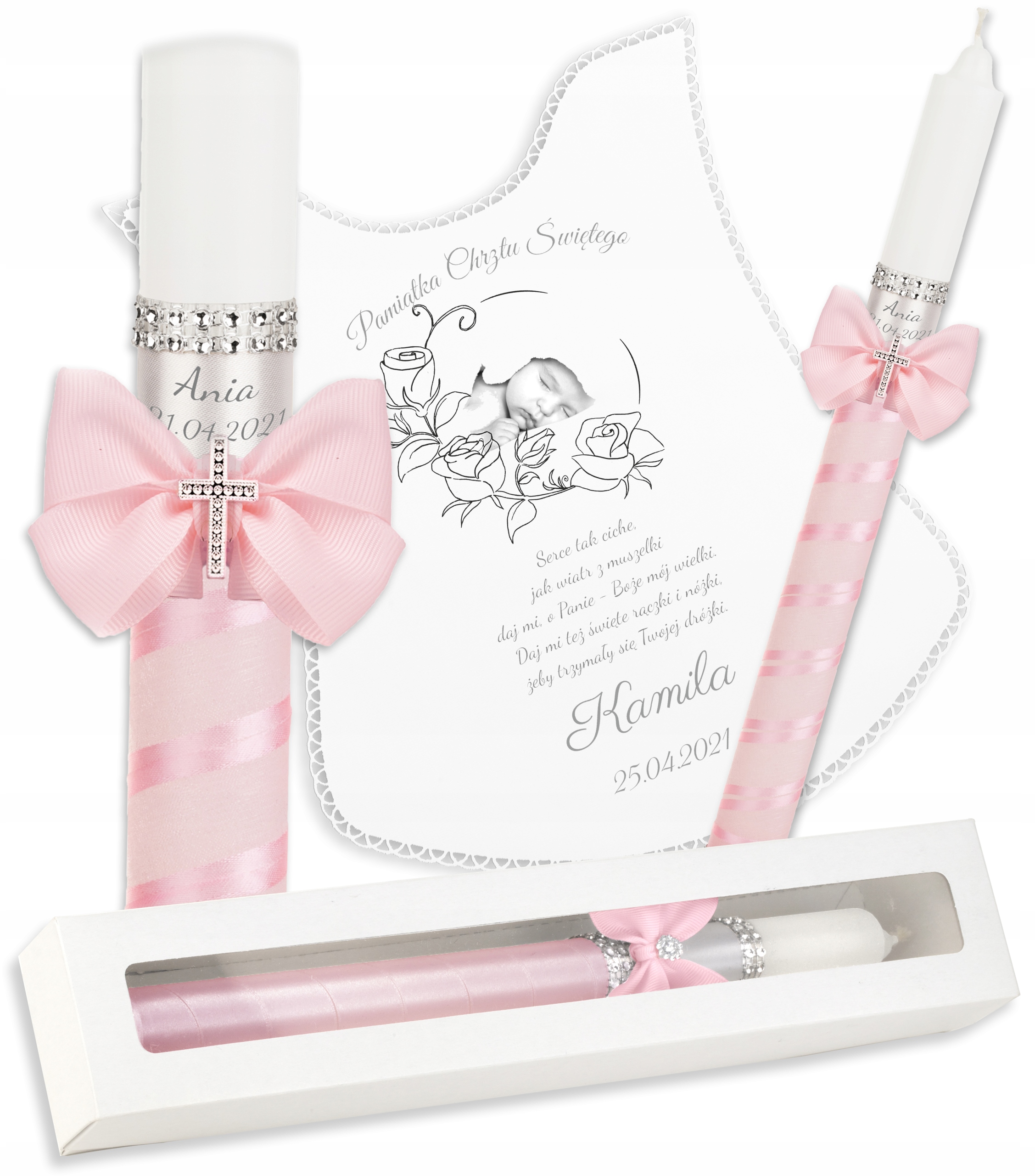Заохочуємо вас придбати свічку та тканину з колекції SANTI . Цей персоналізований комплект чудово підійде для святкування Хрещення. З одного боку, він відповідає вимогам нашої традиції - він необхідний під час Хрещення, на інше - завдяки ретельній роботі - є прикрасою торжества.