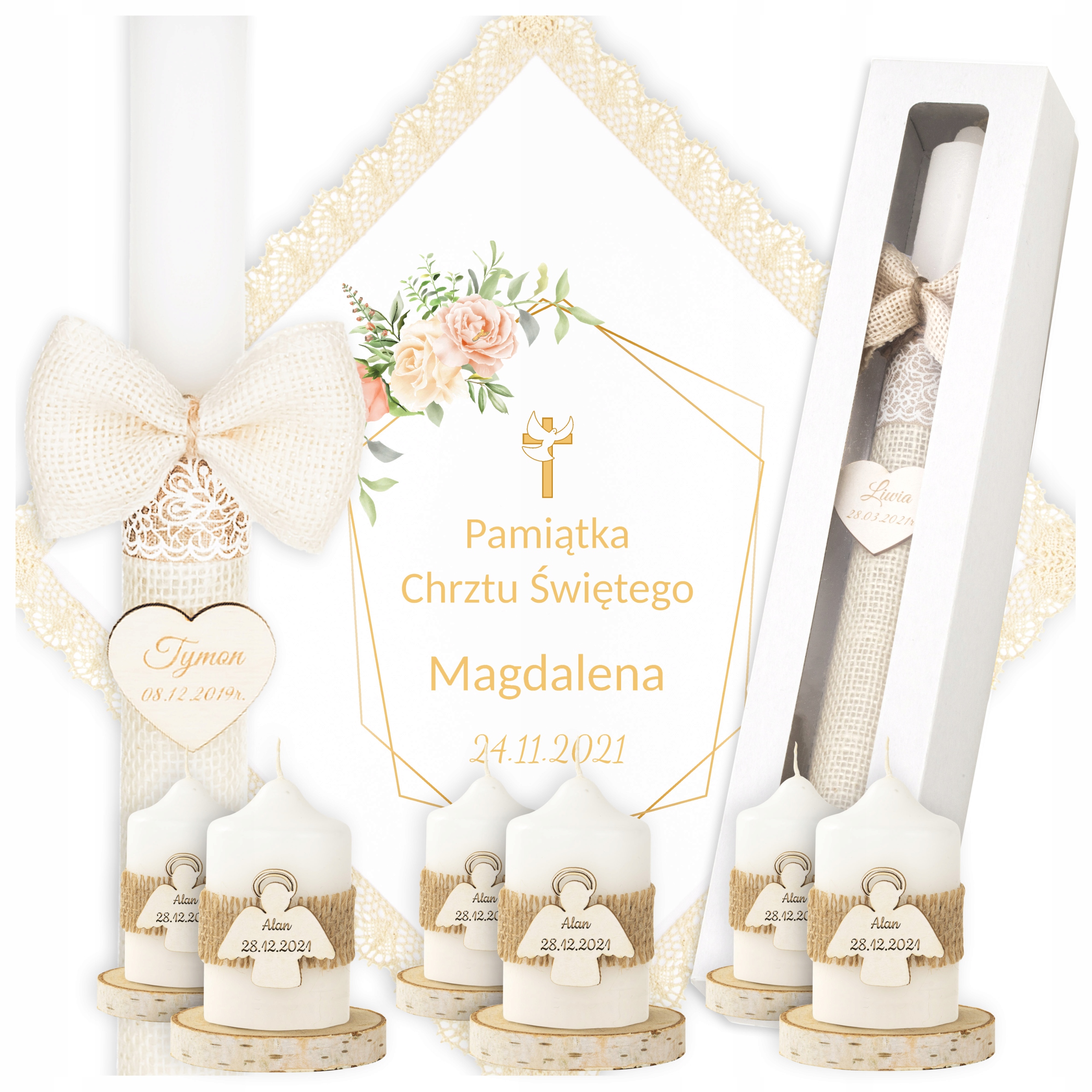 - До свічки прикріплено вигравіруваний янгол з іменем дитини та датою хрещення.