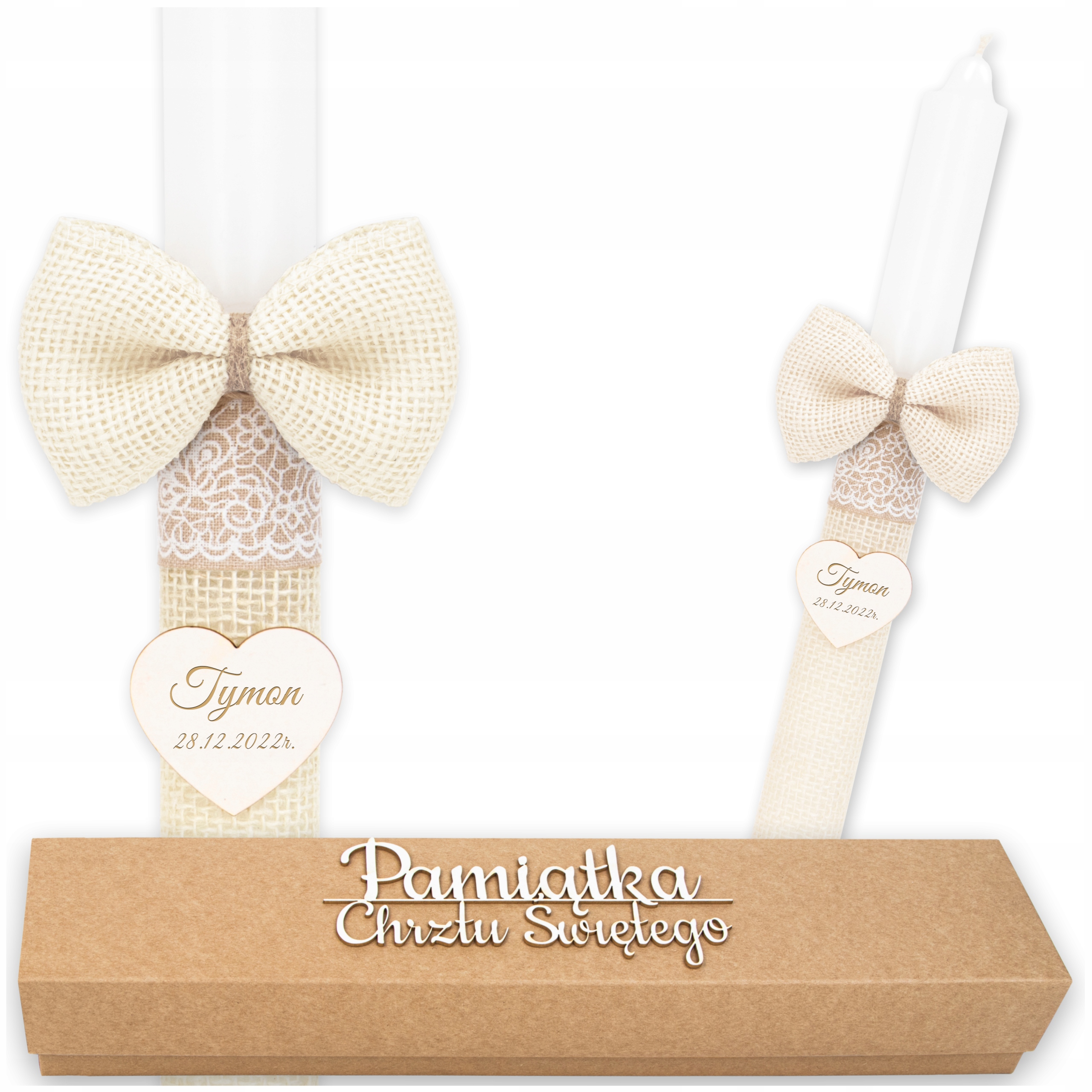 ХРЕСТИННА СВІЧКА з Ім'ям + ХРЕСТИННА СКОРОБКА - БОХО ГРАВІЮВАННЯ