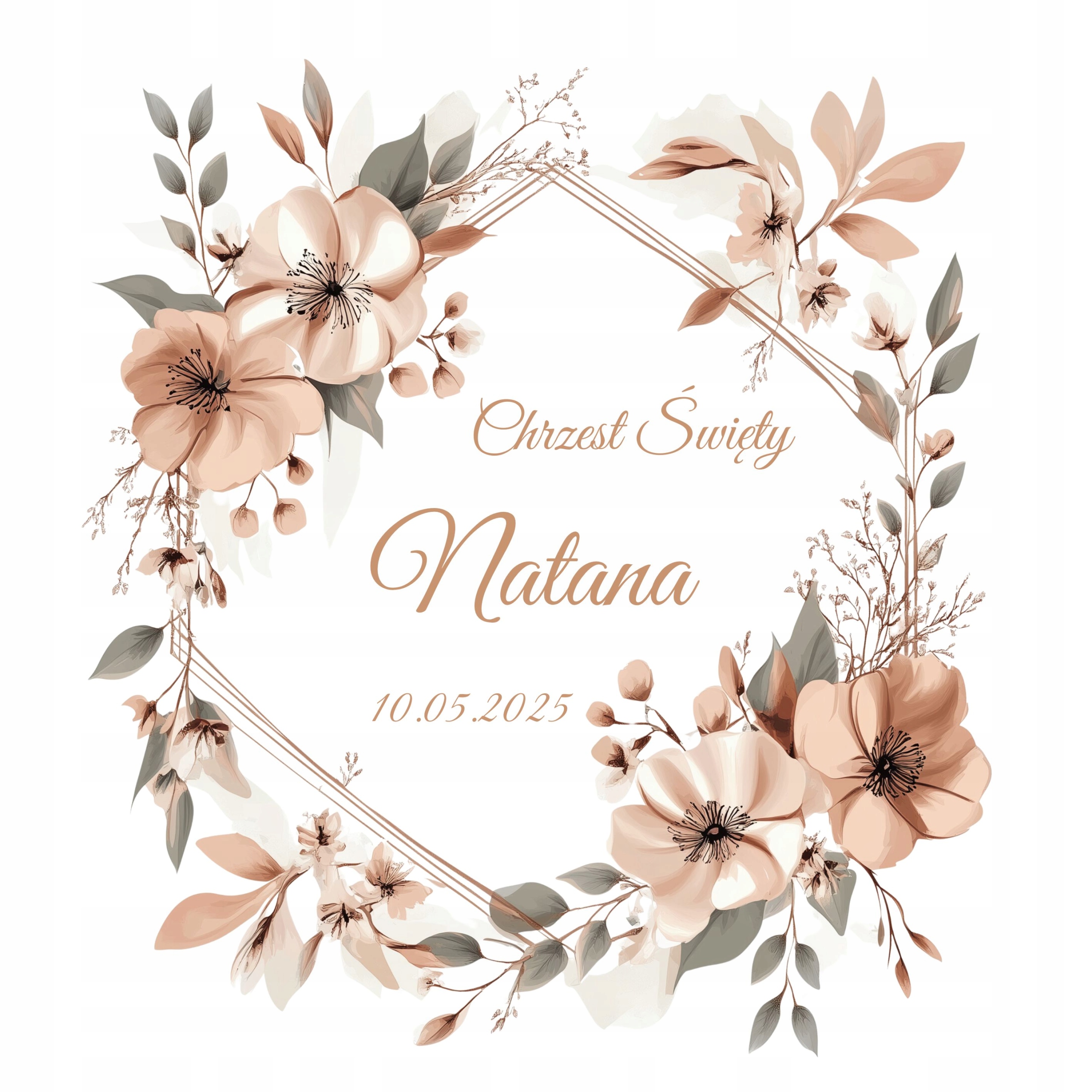 - Візерунок: вінок із коричневих квітів та ім’я та дата хрещення на ваш вибір.