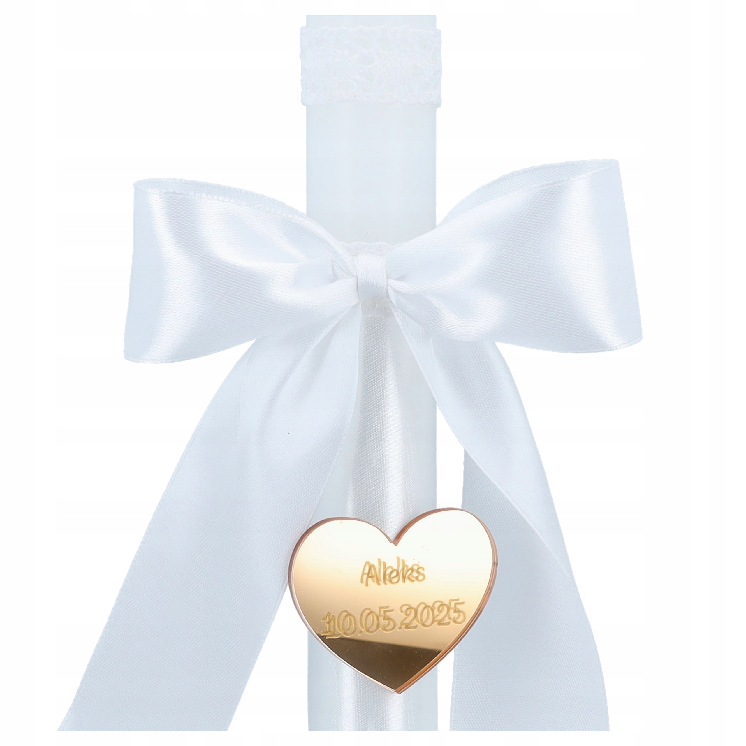 - Персоналізація: серце з оргскла з вигравіруваним ім'ям дитини та датою Хрещення.
