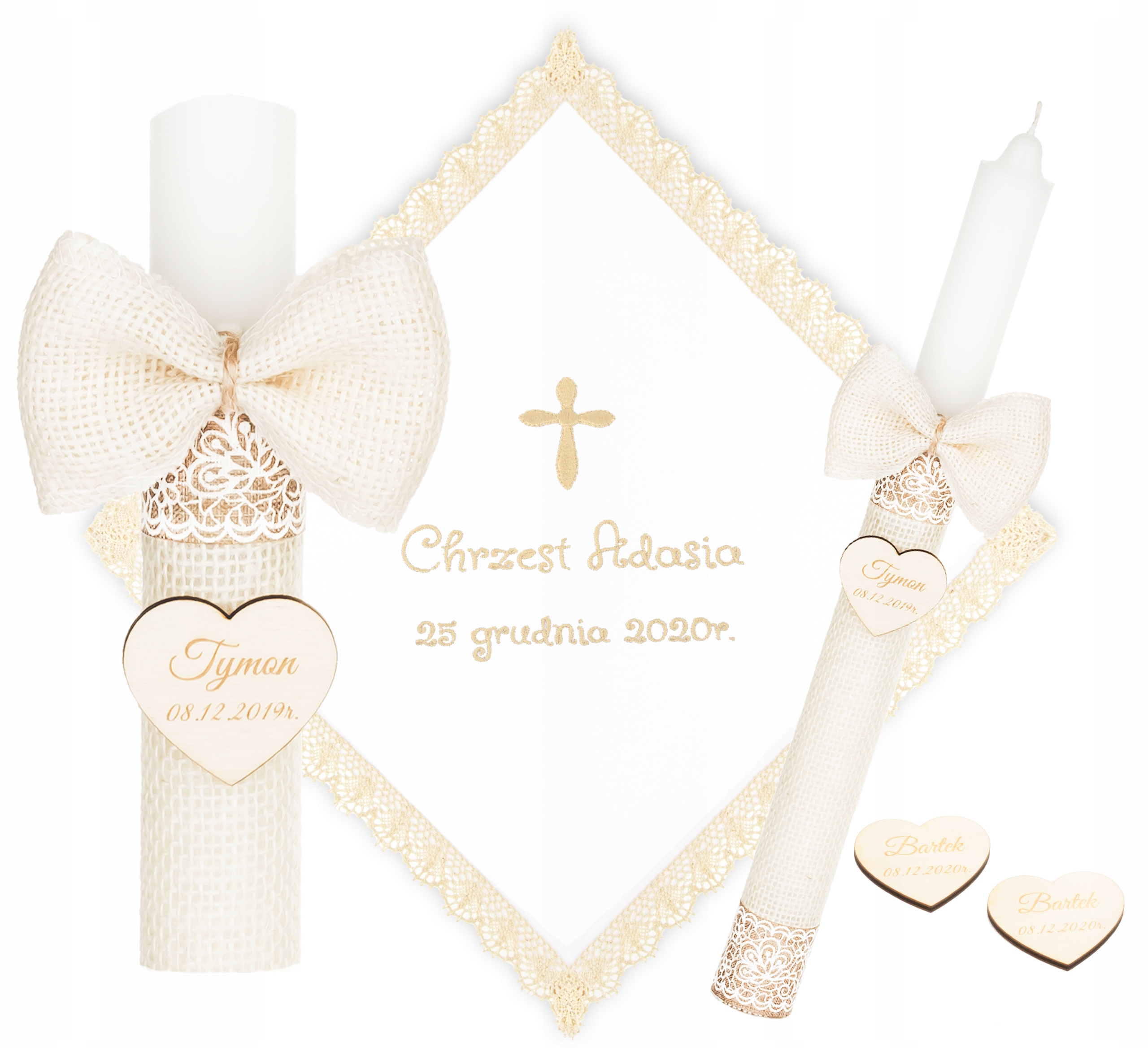 Додатково - ми додаємо 2 предмети до кожного купленого набору в подарунок підвіски з гравіюванням імені дитини та датою хрещення (як на свічці). Їх можна додати в подарунок або залишити батькам і дітям на пам'ять :)