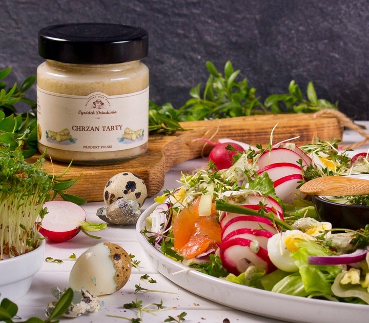 старти кореня хрону з додаванням спецій - це смак традиційного рецепту. Він характеризується винятковою різкістю, завдяки якому він підкреслить смак багатьох страв. Рекомендується для ковбаси, яєць та смажених. В основному використовується для жорстких -догістських страв, ковбас та соусів. Він ідеально поєднується з кислим супом і білою ковбасою.