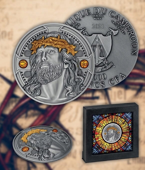 Поєднання чудового образу Христа Спасителя, виконаного в техніці медальйон, оздобленого балтійським золотом - польським бурштином і добірного золотого покриття 999 проби з двома унціями кришталево чистого срібла 999 проби, створило унікальну в світі композицію з безперечною колекційною цінністю!