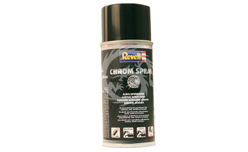 Надайте своїй моделі блискучого вигляду за допомогою Revell Chrome Spray. Тому що за допомогою легкого у використанні Chrome Spray ви можете легко обробити всі хромовані деталі високої якості - для ще більш реалістичного та детального вигляду моделі. Revell Chrome Spray є обов’язковим атрибутом для досвідчених шанувальників моделювання з особливо високими вимогами до готової моделі – результати хромованого покриття вражають.
