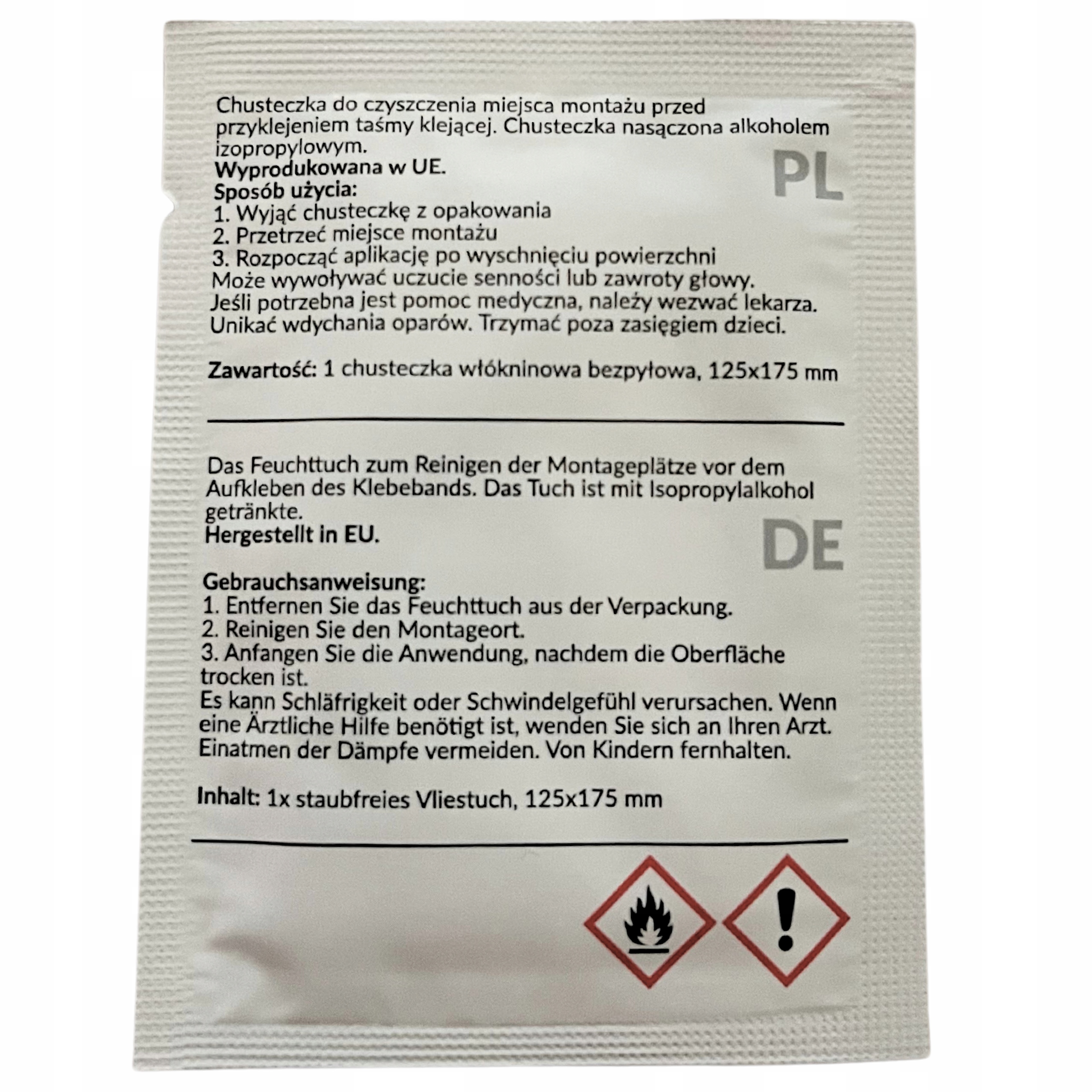У набір входить серветка, змочена ізопропіловим спиртом для очищення місця встановлення перед наклеюванням клейкої стрічки.