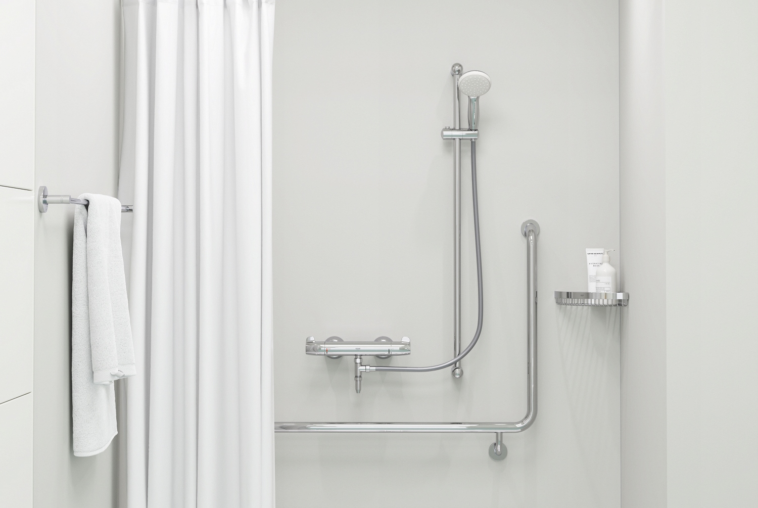 GROHE Essentials представляє унікальну колекцію аксесуарів для ванної кімнати. Серед них виділяється ексклюзивна ручка для ванни, яка створена для забезпечення максимальної безпеки під час купання, особливо коли поверхня ванни слизька.