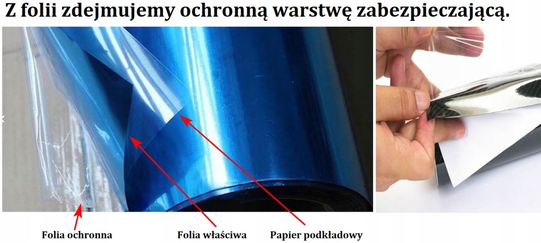 Перед обклеюванням автомобіля знежирте поверхню миючим засобом (наприклад, ізопропіловим спиртом), ретельно очистіть усі елементи від пилу та жиру, а також ті елементи, які піддавалися полірувальній косметиці. пластик (наприклад, елементи кабіни, бічні планки) матовий для підтримки хорошої адгезії фольги до основи. Фольга встановлюється сухою. Мінімальна температура в приміщенні при обмотці автомобіля - 10 градусів, оптимальна приблизно 18-20 градусів. Під час монтажу фольгу необхідно розігріти (бажано термопістолетом), що покращить пластичність і адгезію при покритті профільованих елементів. Для склеювання знадобиться ракель для видалення бульбашок повітря, ніж і ганчірка. Відмірявши необхідну довжину фольги, відріжте її з припуском з кожного боку. Починаємо розгладжувати ракелем від центру приклеєного елемента, до країв. Після наклеювання загортаємо фольгу всередину обклеюваного елемента і обрізаємо надлишки, залишаючи кілька сантиметрів. Не зрізайте плівку врівень з краями автомобіля - це допоможе уникнути негативних наслідків, таких як усадка плівки та механічні пошкодження, наприклад, під час миття автомобіля. У разі нанесення на поверхні з глибоким тисненням, на краях, у місцях сильного навантаження або в місцях, які піддаються відшаровуванню фольги, ми можемо використовувати праймер, який збільшить міцність адгезії клею до поверхні нанесення. Щоб не подряпати фольгу під час нанесення (до цього схильні високоглянцеві фольги), використовуйте фетровий ракель, а також використовуйте розпилювач води на зовнішній частині фольги, щоб не натискати ракелем на суху поверхню; використовувати спеціальні розгладжувальні рукавички. Якщо ми хочемо щось покращити, фольгу можна обережно відклеїти, в розумних межах, використовуючи більш високу температуру, і приклеїти знову. Занадто щільне натягування фольги або відсутність належної температури може призвести до її тріщини. При першій обмотці автомобіля слід враховувати можливі поправки, так як складний елемент не завжди вдається обмотати з першого разу, і з кожним наступним елементом ви отримуєте досвід. Після встановлення транспортний засіб має залишатися при кімнатній температурі протягом 24 годин, щоб уникнути перепадів температури, які можуть спричинити усадку плівки.