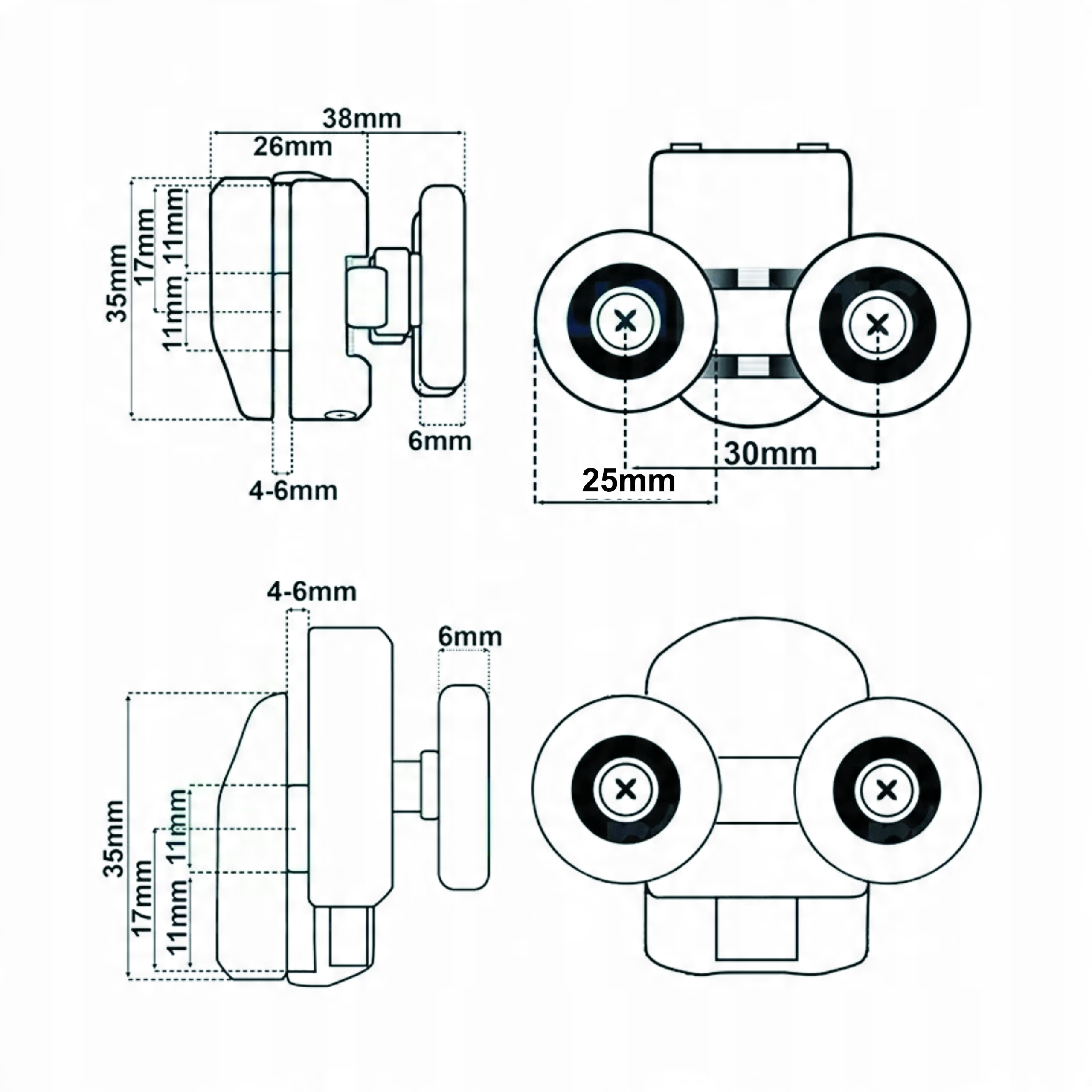 ХРОМОВАНІ ПОДВІЙНІ РОЛИКИ ДЛЯ ДУШової КАБІНИ 25 мм