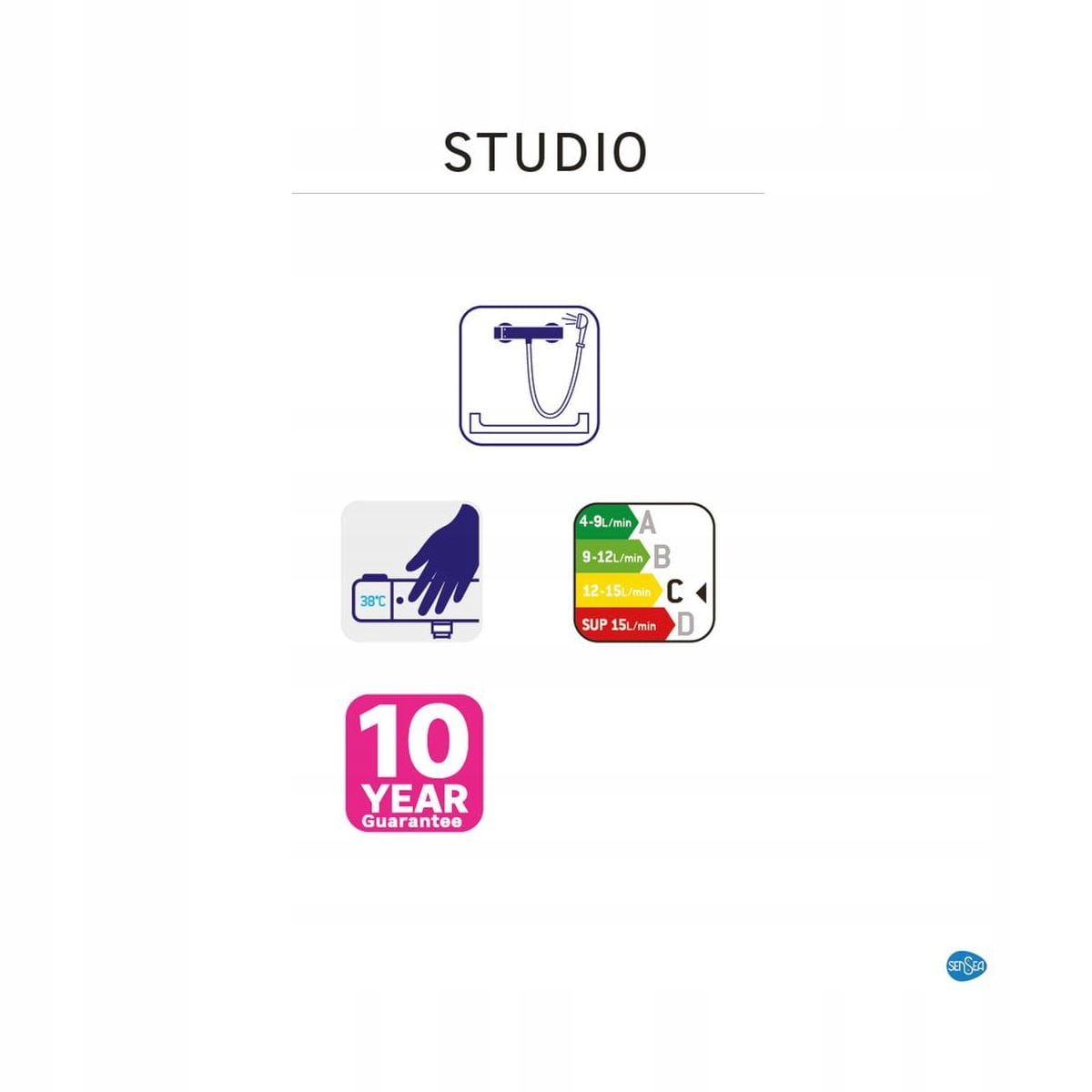 STUDIO Sensea змішувач для душу з термостатом. Його квадратні форми ідеально підходять для сучасної ванної кімнати. Ергономічні ручки дозволяють легко маніпулювати ними під час купання. Термостатичний змішувач забезпечує більший комфорт, ефективність, а також безпеку використання. Продукт виготовлено в Європі.