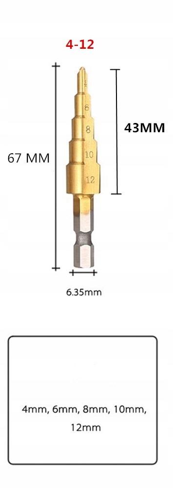 HSS + TYTAN КОНИЧНЕ СВЕРЛО 4-12 мм
