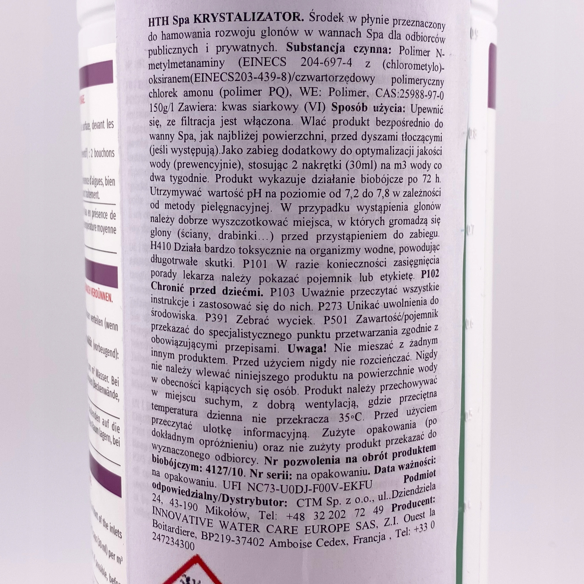 HTH Crystallizer – засіб, призначений для кристалізації води у разі надмірного забруднення. Камутна вода в нашому спа-центрі утворюється в результаті накопичення мільйонів дрібних частинок, надто малих, щоб їх можна було відфільтрувати.