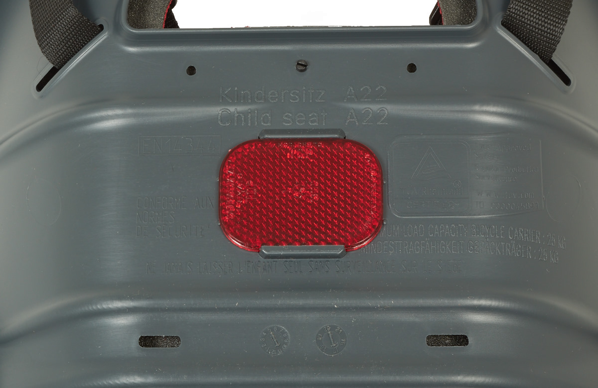 - Відбивач на задній частині спинки покращує видимість сидіння, що забезпечує більшу безпеку використання.