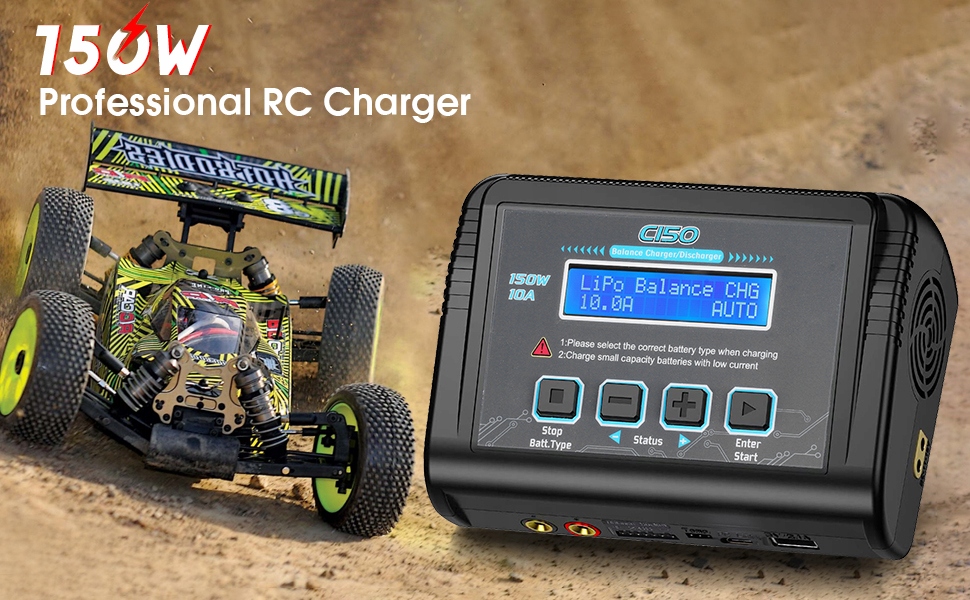 【підтримує різні типи акумуляторів】 Lipo 1-6s (3,7 V-22,2 В); Лі-іон 1-6 (3,6 V-21,6 V), життя 1-6 (3,3 V-19,8 V), LIHV 1-6s (3,8 V-22,8 V); NIMH/NICD 1-15S (1,2 V-18 V); PB 2-20 В акумулятор; Інтелектуальний акумулятор I/II/III (необов'язковий кабель зарядки DJI). Зарядник C150 RC задовольнить усі потреби, пов’язані з зарядкою акумуляторів RC