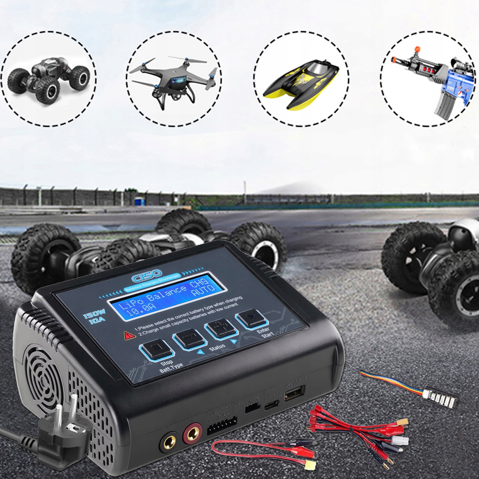 【Ефективний, компактний зарядний пристрій】 Подвійний вхід змінного струму/постійного струму: змінного струму 100-240 В вхід, постійний вхід постійного струму 11-18 В, максимальна вихідна потужність 150 Вт, струм зарядки 0,1-10 А, струм розряду 0,1-2 A. Вбудований вентилятор та живлення. З перемикачем живлення. Цей портативний та швидкий зарядний пристрій ліпо ідеально підходить для різних акумуляторів RC