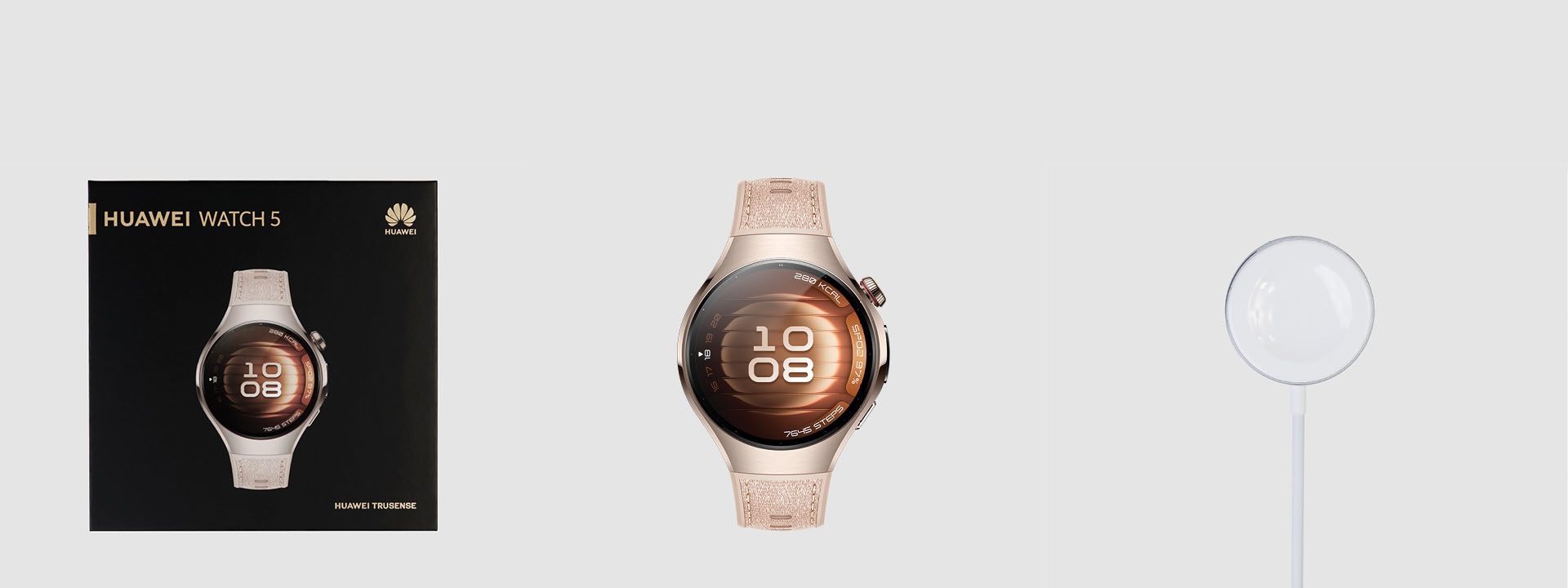 • Huawei Watch 5 Елегантний 42 мм (бежевий) з 904L корпусом з нержавіючої сталі та бежевою композитною смужкою,