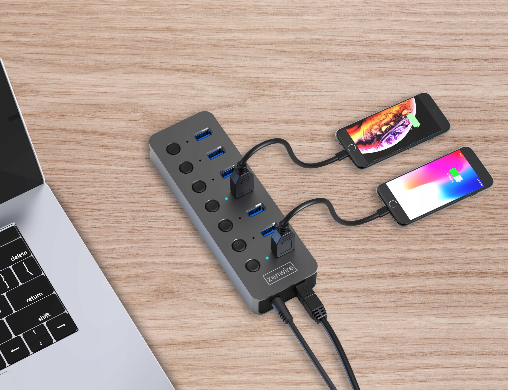 Концентратор 7x USB 3.0 від Zenwire має 7 незалежних входів із можливістю індивідуального вмикання та вимикання кожного порту: b>