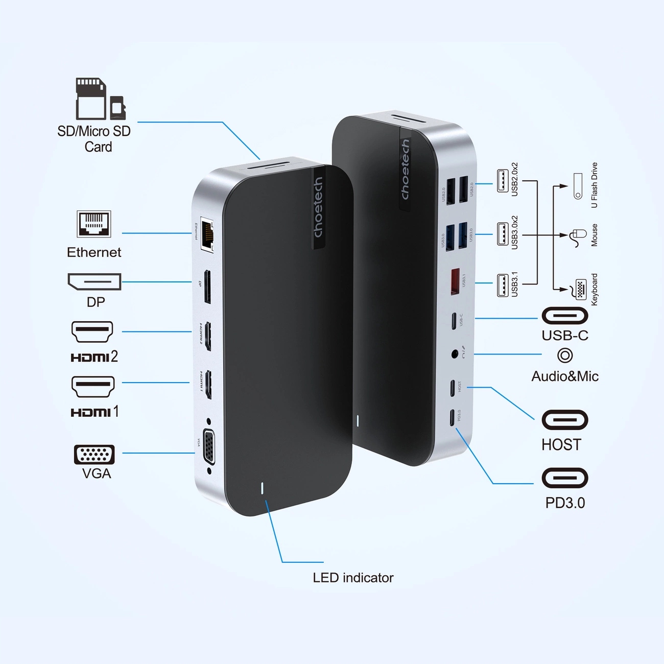 Гаджет від бренду Choeth дозволить вам повністю працювати або розважитися. Все завдяки великій кількості доступних портів та розетків. Нові ноутбуки часто не мають розетки RJ45, яка для гравців є досить важливим елементом. Завдяки Hub Choetch, вам не потрібно турбуватися про його відсутність. Крім того, ви знайдете в ньому Kard SD та TF.