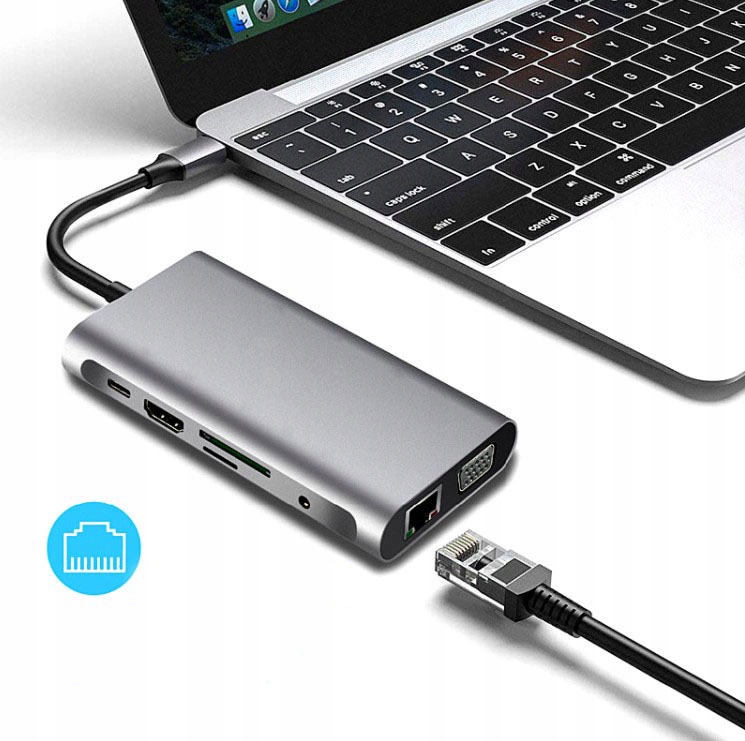 HUB USB-C 11in1 HDMI адаптер 4K VGA Роз'єм SD RJ45 M1