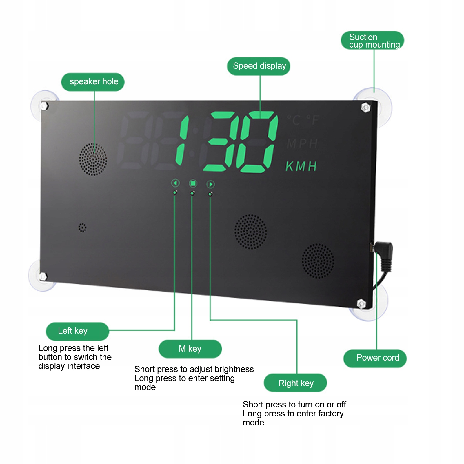 3. Подвійний: цей дисплей може бути використаний як внутрішній дисплей швидкості після встановлення на передньому лобовому склі, а дисплей швидкості ззаду може використовуватися як зовнішній дисплей швидкості вікна.