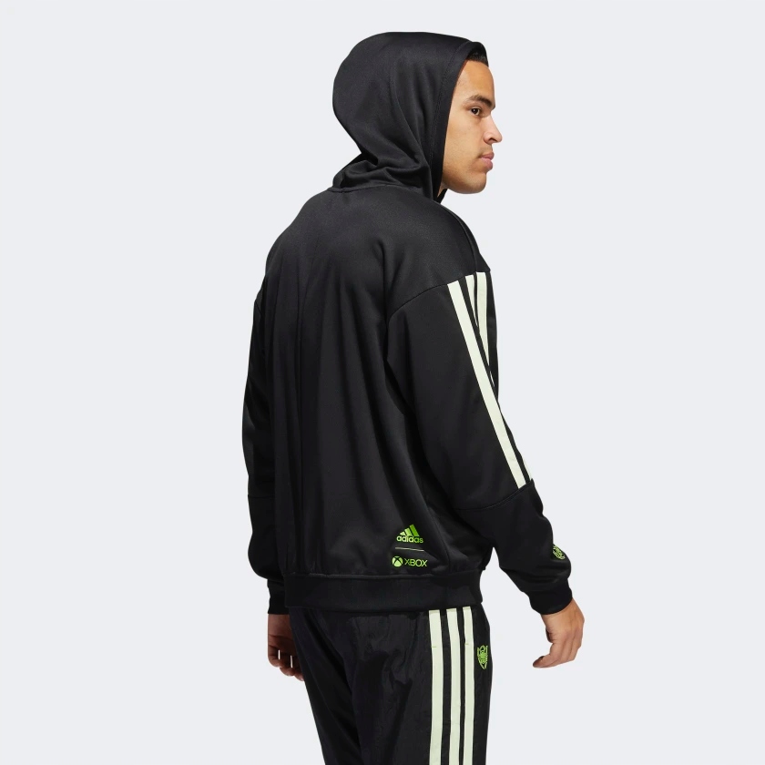 Деякі елементи Adidas можна знайти. на худі, наприклад, 3 смуги та логотип.