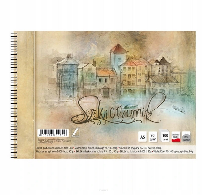 ескізна книга на спіралі A4 складається з 100 карт високоякісного вільного паперу з вагою 90 г/м2.