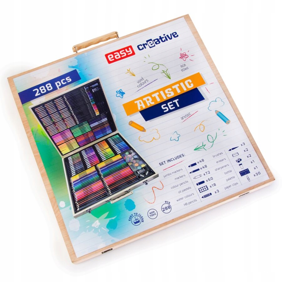 Легкий мистецький набір з 288 елементів у дерев’яному валізі на набір-288-2
