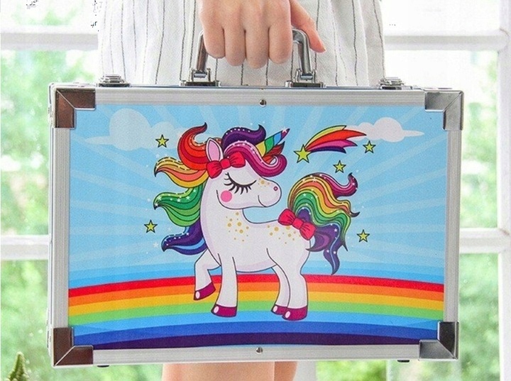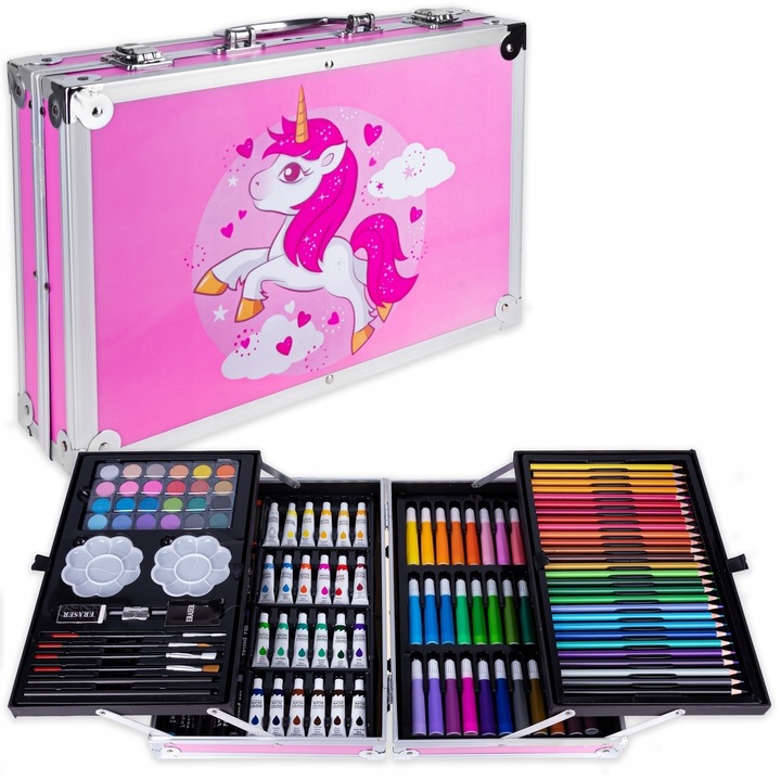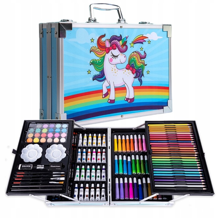 Цей повний художній набір є ідеальним рішенням для початківців і досвідчених художників, які хочуть розвинути свої навички малювання. Набір містить аж 145 елементів, серед яких акварельні та олійні фарби, пензлики різних розмірів, вугільні олівці, гумки, фломастери та багато іншого.