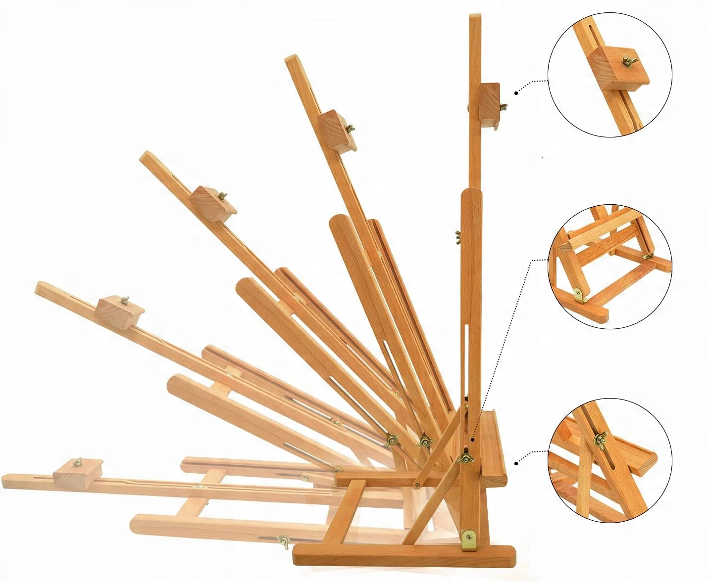 Незалежно від того, аматор ви чи професіонал, наш мольберт пропонує багато можливостей налаштування завдяки двовимірному налаштуванню. Виготовлений зі струганої соснової деревини, що забезпечує довговічність і стабільність.