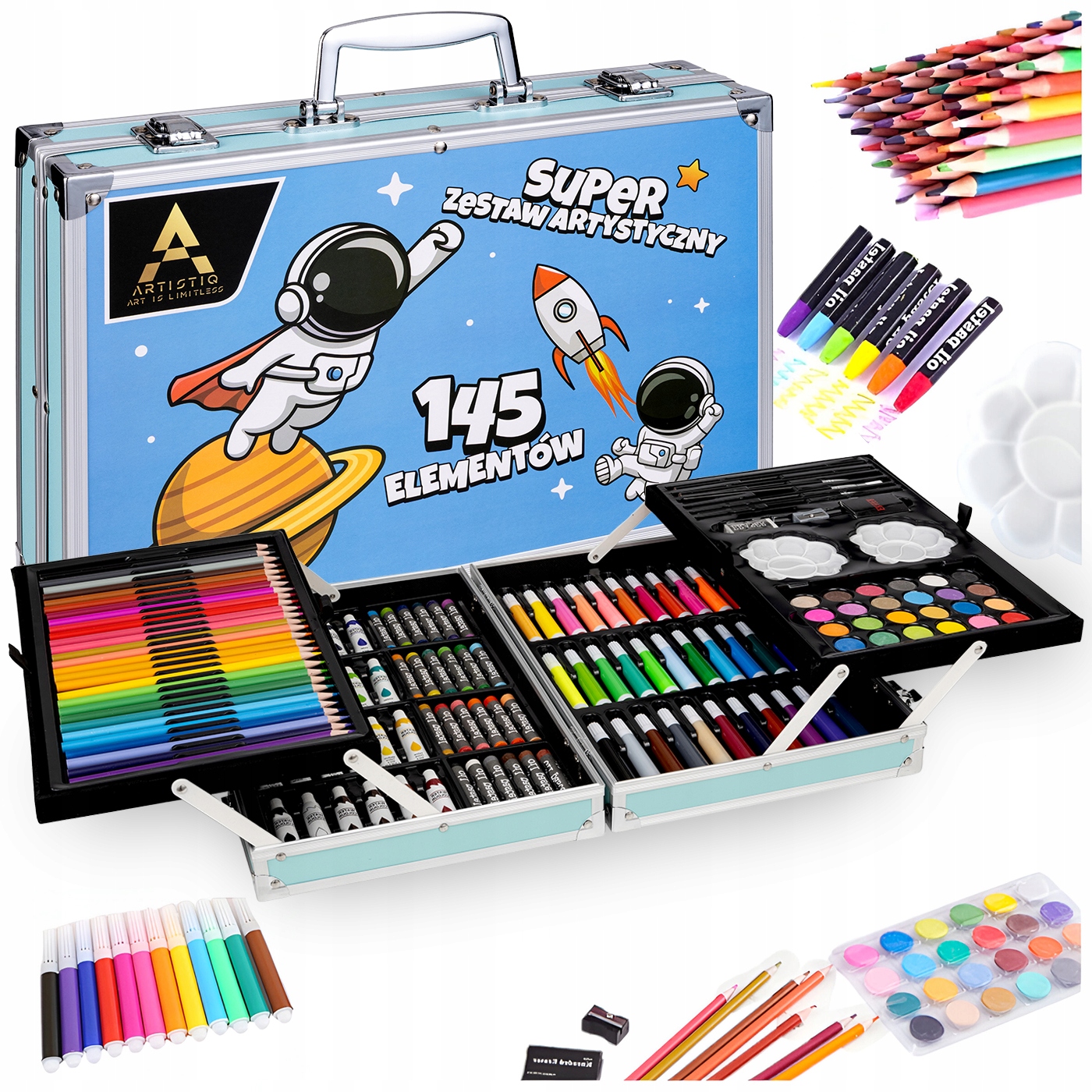 ХУДОЖНИЙ НАБІР ДЛЯ РОЗМИСУВАННЯ КОСМОС ВАЛІЗА 145 шт.