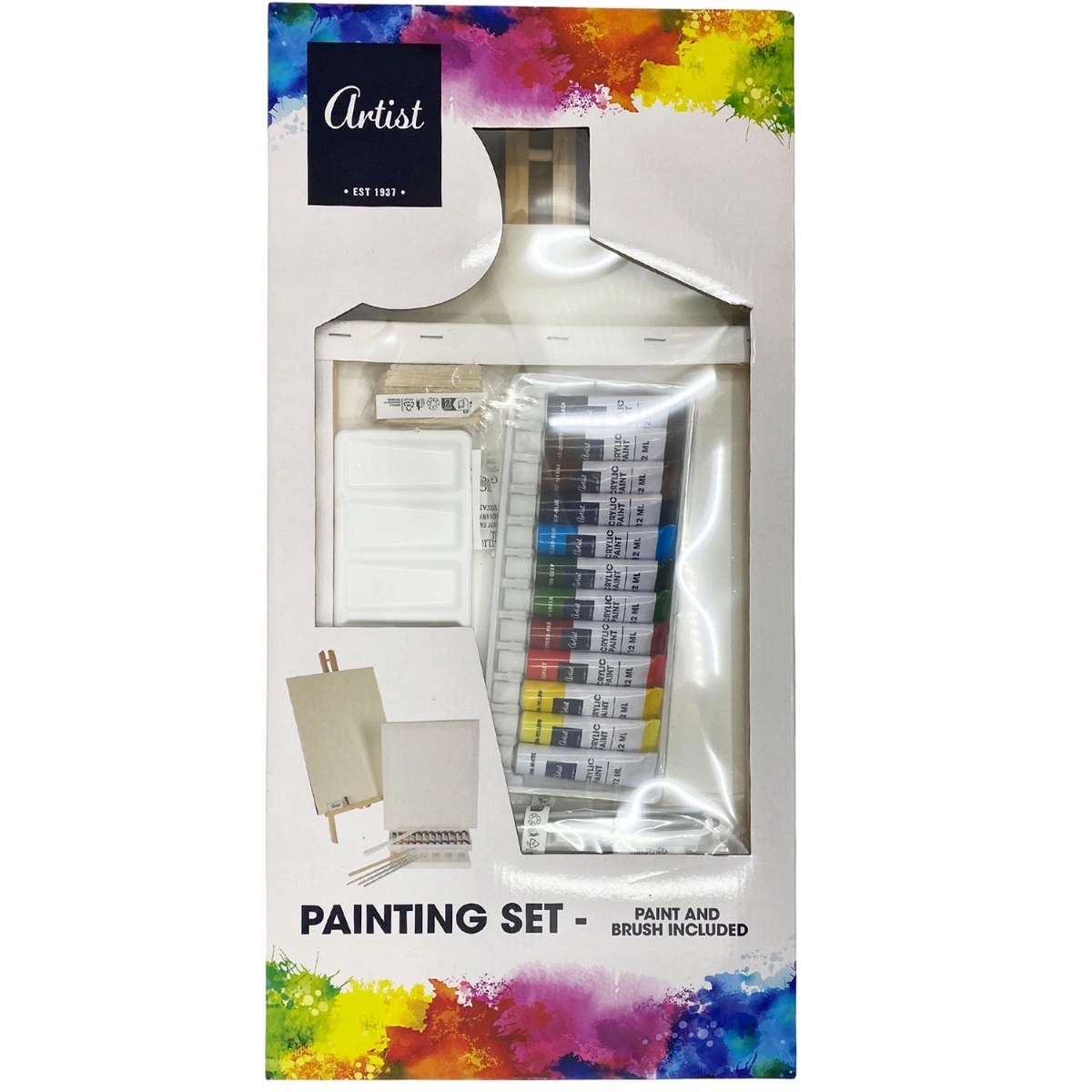 Набір включає всі необхідні аксесуари для малювання зображень. Включає: полотно, столовий мольберт, три пензлі, одна шпаклівка для картини, одна палітра змішування фарби, олівець, еластична, шкіра, 12 аркушів акрилового паперу. Ці аксесуари дозволять нам створити зображення мрії вдома.
