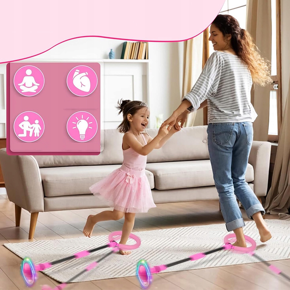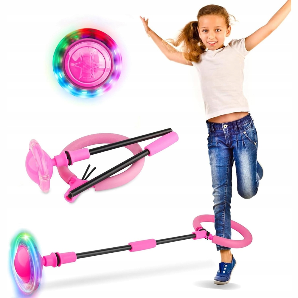 Стрибку - це новий вид дитячого стрибкового кільця. Коли дитина стрибає через гойдалкове колесо однією ногою, барвисте світло -шоу автоматично відтворюється електромагнітною індукцією.