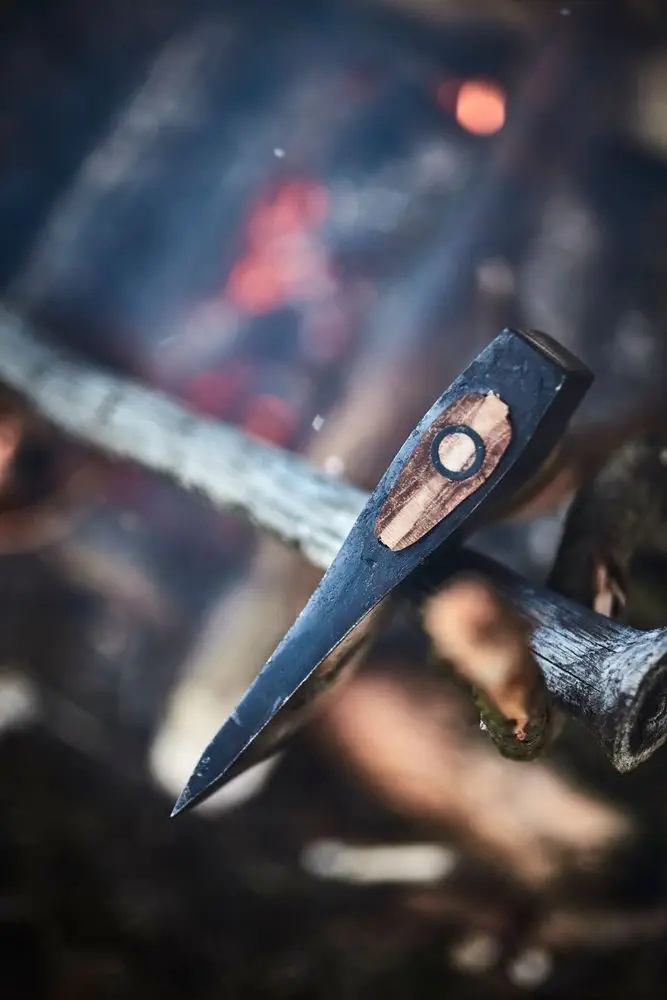 - Сталь обробляється 40-60 ударами, що збільшує щільність сталі і, отже, міцність сокири.