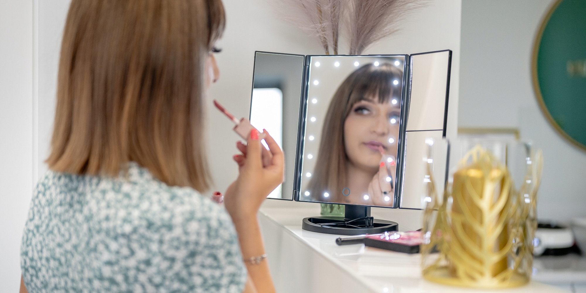 Дзеркало макіяжу HS-ML04-це ідеальне поєднання стилю та функціональності. забезпечує відмінне освітлення обличчя та робить щоденний догляд справжнім задоволенням. Кнопка сенсорної, інтегрованої в дзеркальну поверхню, дозволить легко регулювати яскравість світла до ваших поточних потреб. Пристрій може працювати за допомогою акумулятора AAA або USB -кабелю, підключеного до банку живлення, комп'ютера або зарядного пристрою. Швидке та зручне складання економить місце на столі або туалетному столику. Модулі, нахилені в діапазоні 180 °, забезпечать ще більше свободи під час застосування макіяжу. Завдяки додатковим дзеркалам ви отримаєте повний контроль над кожною деталлю свого макіяжу.