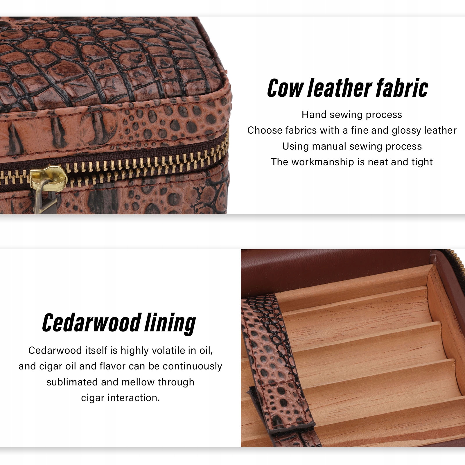 4. Для 4 сигар: коробка для сигари тримає чотири сигар. Humidor покритий двома маленькими кишенями, в яких можна покласти різак для сигар і запальничку (не включений у набір).