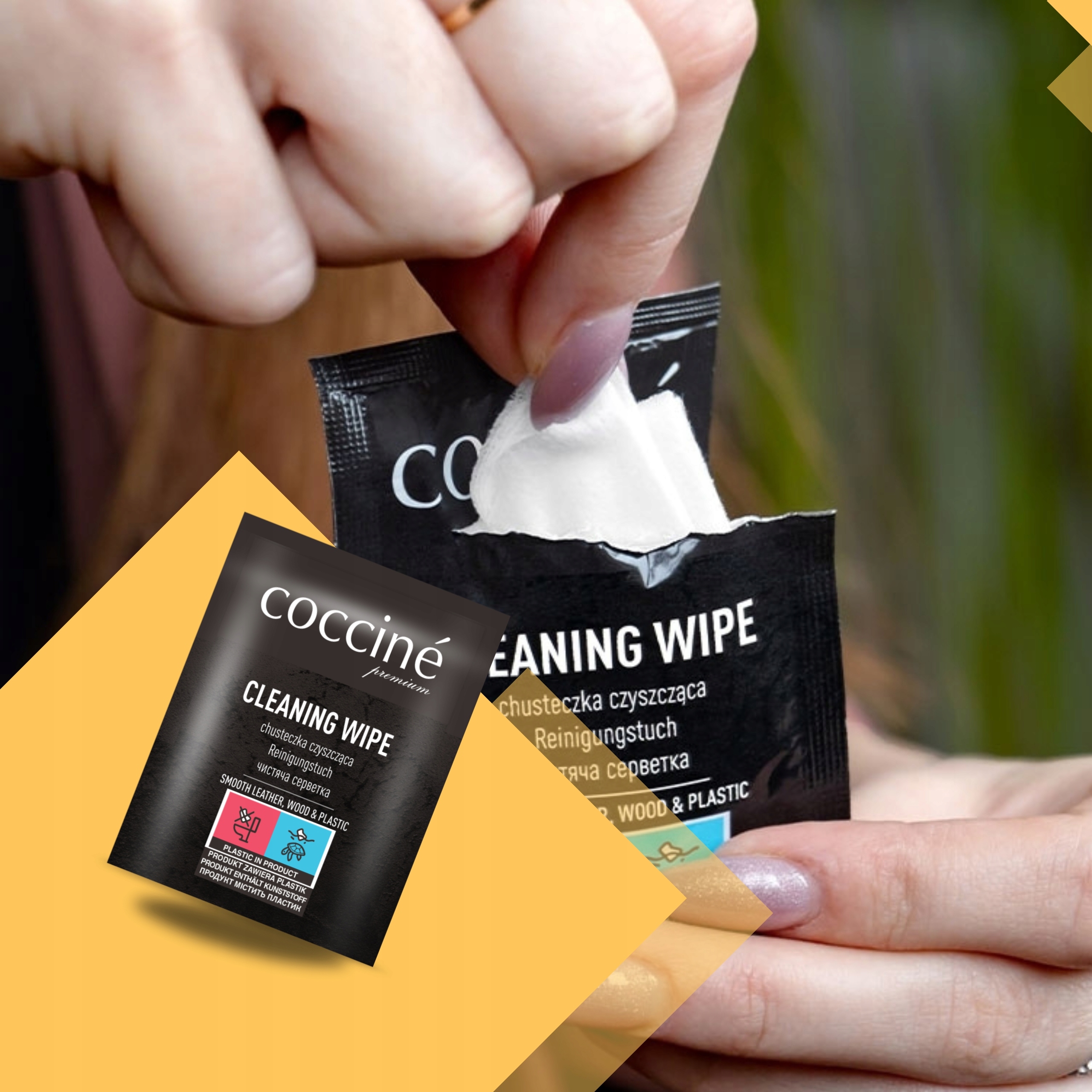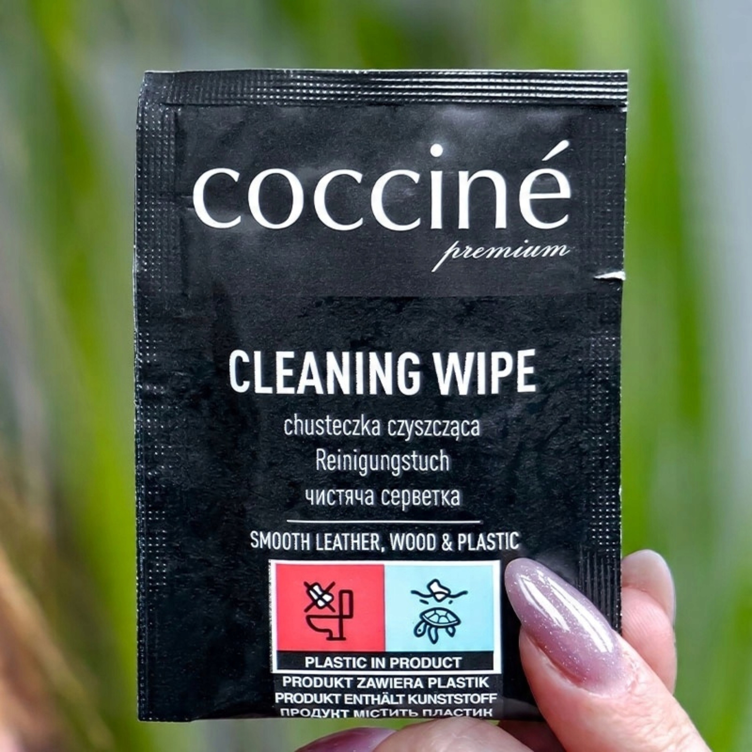 Coccine Clean Wipe – незамінний гаджет у вашій сумці чи кишені. Завдяки цьому ви завжди будете готові до несподіваних плям і забруднень, забезпечуючи естетичний вигляд вашого взуття та шкіряних аксесуарів. Обирайте комфорт та ефективність – обирайте перевірений продукт від відомого бренду Coccine!