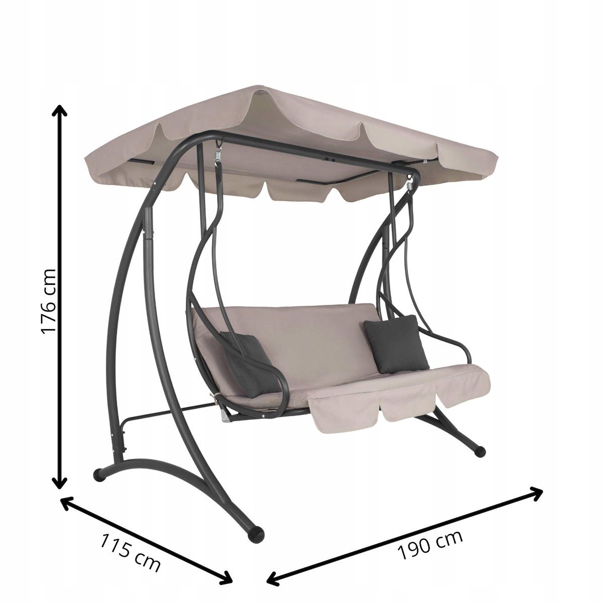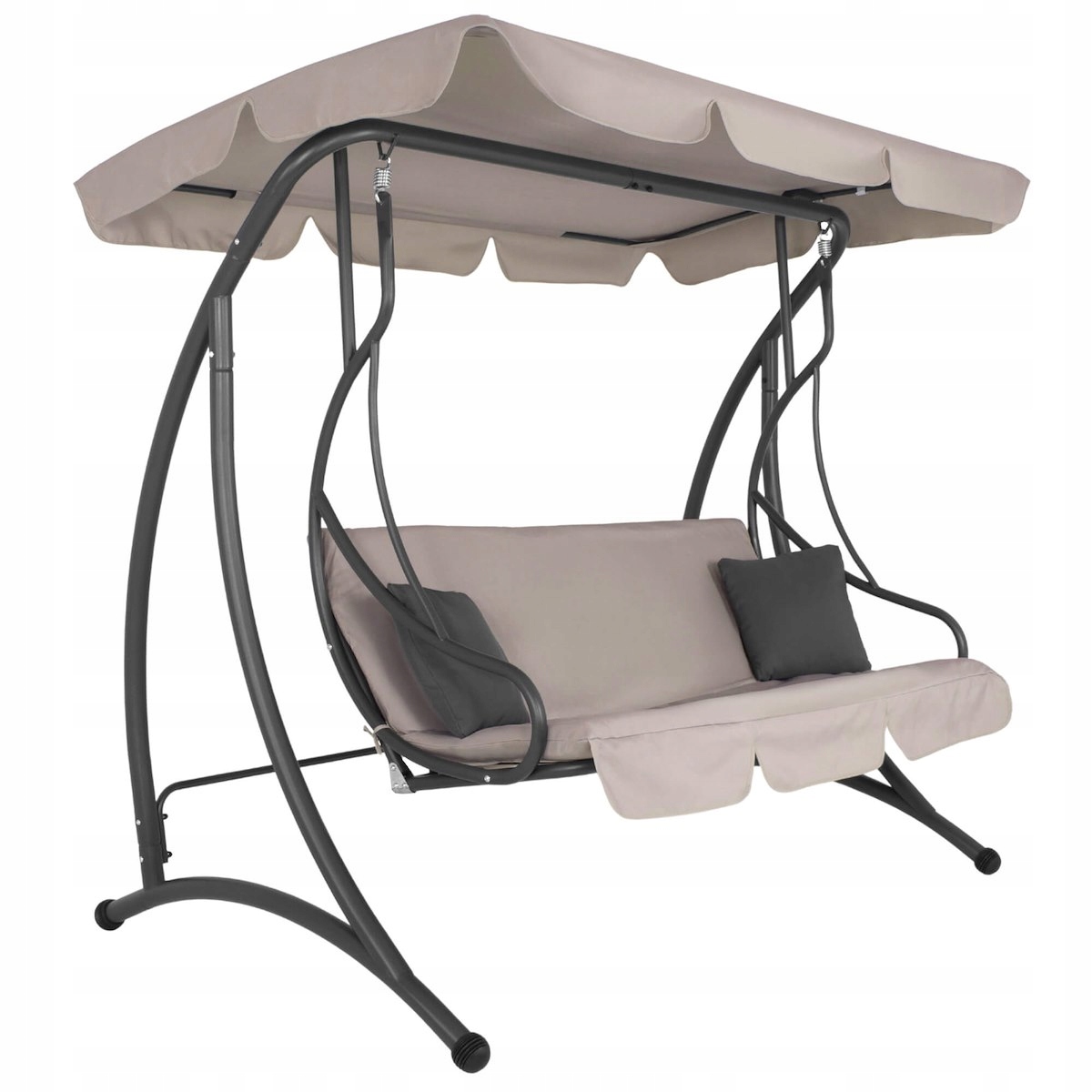 HUŚTAWKA OGRODOWA DUŻA BUJANA ŁAWKA 3-OSOBOWA + PODUSZKI BEŻOWA Z DASZKIEM