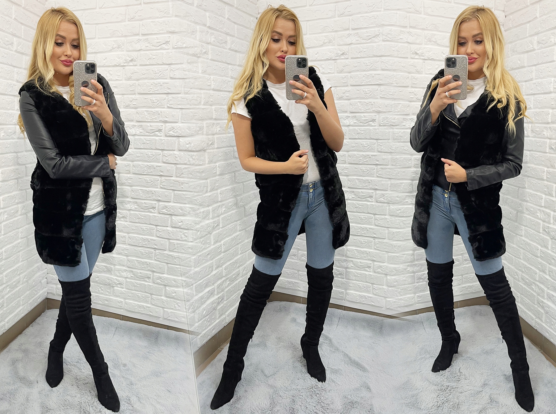 ХУТРЯНИЙ ЖИЛЕТ, довгий, без рукавів, застібається, L