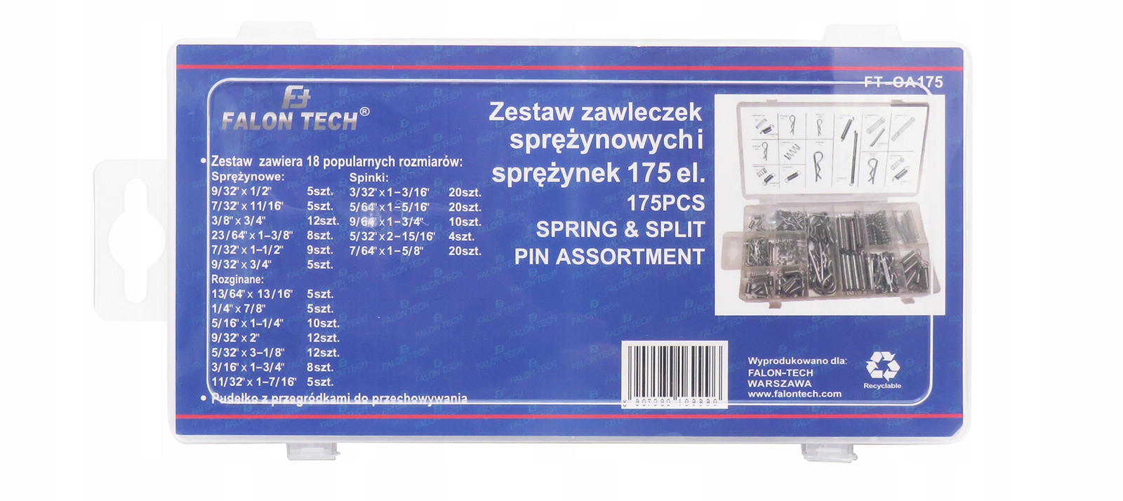 Багатий набір пружинних шплінтів від польського виробника FALON TECH, що містить найпопулярніші типи та розміри шплінтів та пружин.