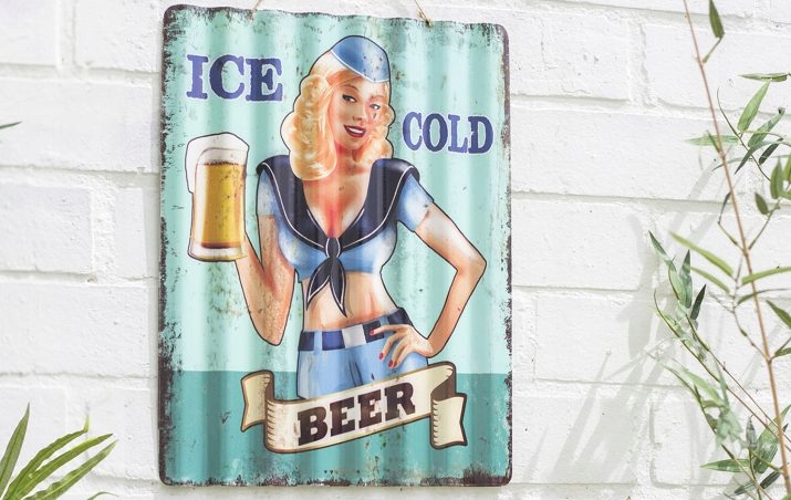 Рельєфну, рифлену, барвисту металеву табличку з написом «КРИЖАНЕ ХОЛОДНЕ ПИВО» для повішування на стіні гаража, кімнати або зовні будинку. p>