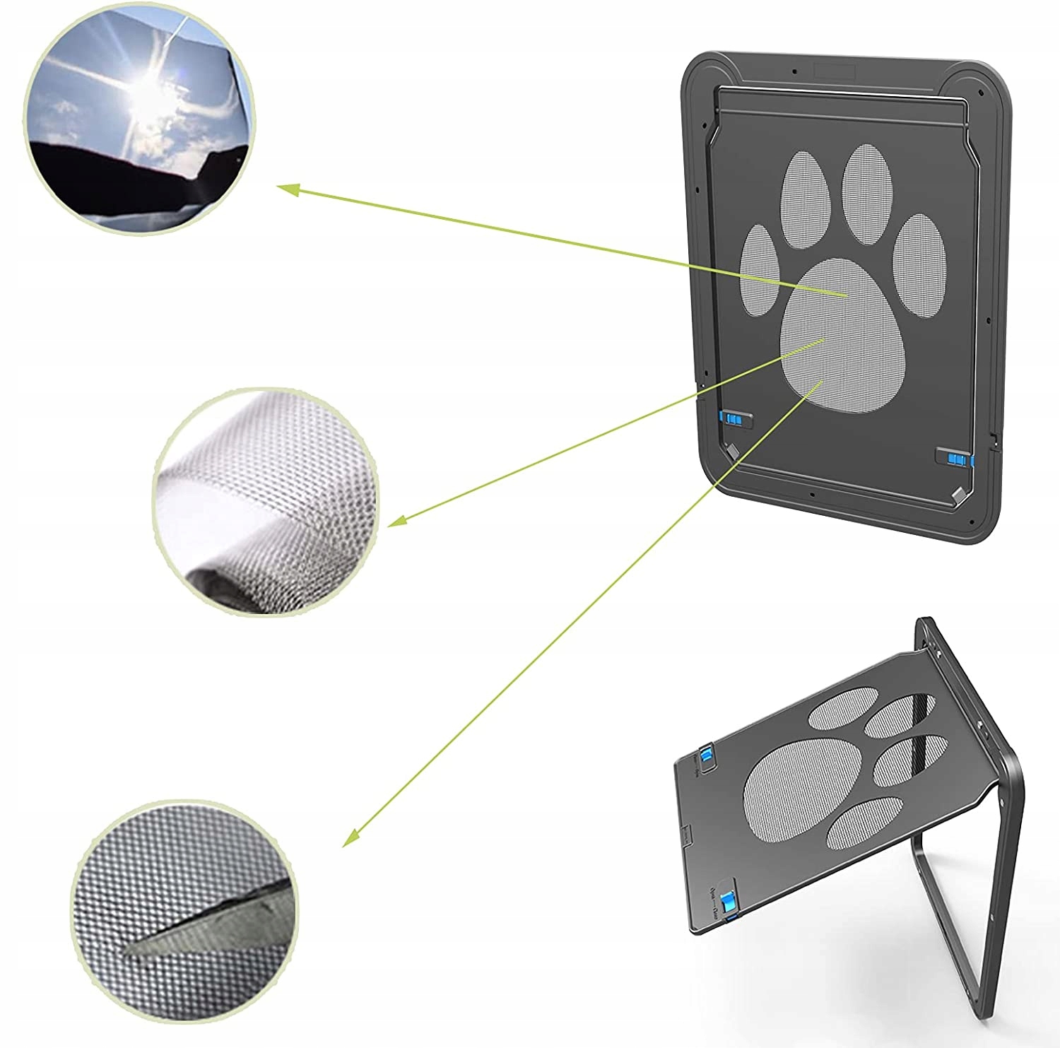 🐶 【Автоматичне закривання та блокування】: вбудований магнітний клапан, який автоматично закривається. Двері закриваються автоматично, коли тварина йде. Ви навіть можете зачинити двері, щоб ваші домашні тварини не виходили на вулицю вночі або коли вас немає вдома. Якщо ви шукаєте віконні двері для домашніх тварин і хочете створити гарний прохід для свого кота чи собаки, це чудовий вибір.