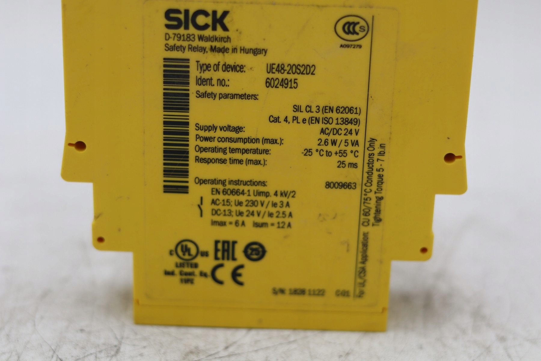 UE48-20S2D2-це програмоване реле безпеки з двома незалежними входами та двома напівпровідниковими виходами. Він є частиною серії Sick AG EU48, розробленої для контролю датчиків безпеки, таких як: -Кусини -Класер дизайнери -Маргінальні та дверні з'єднувачі -E -stop (кнопки аварійних аварій)