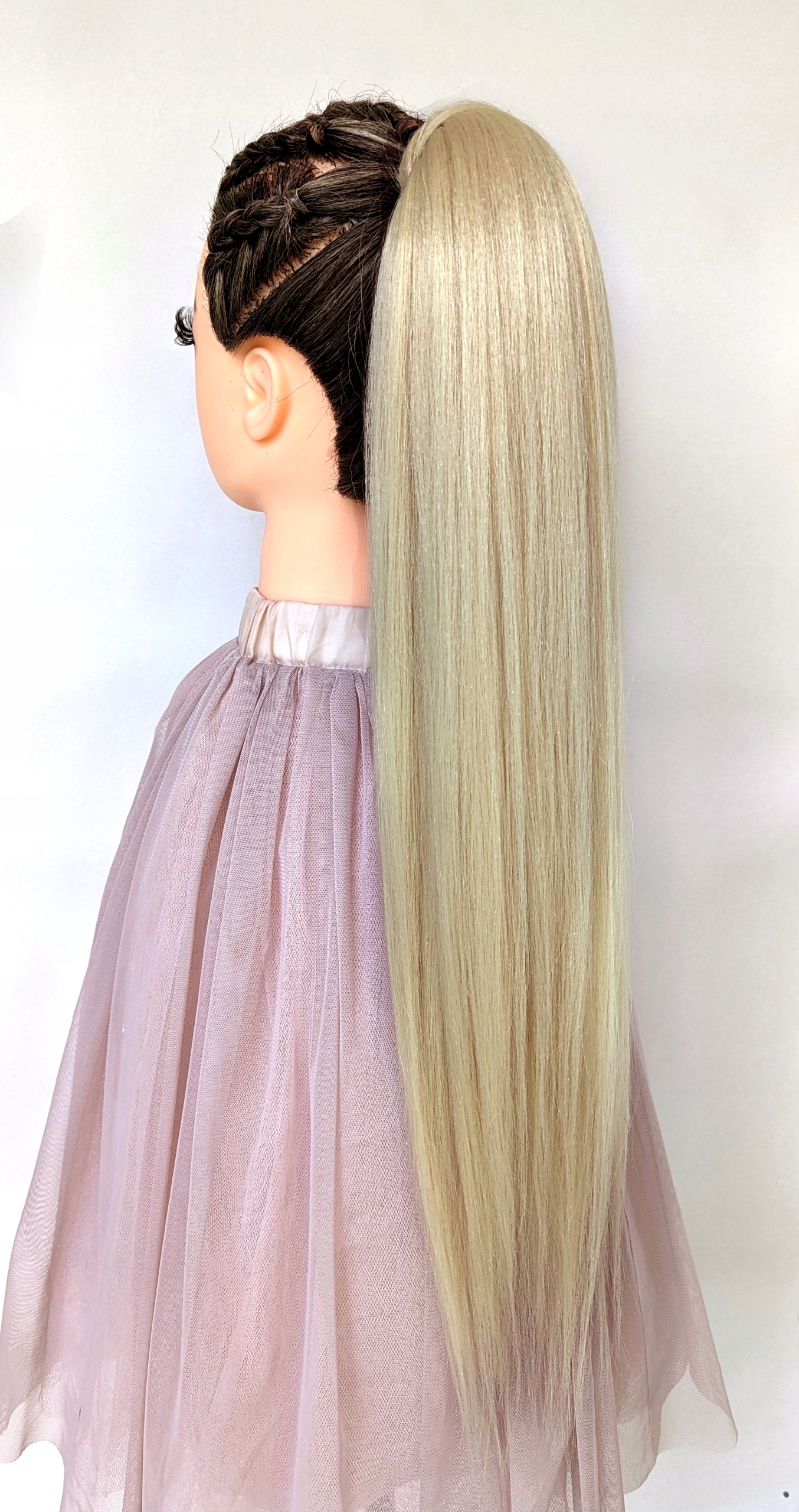 Хвостик, прикріплений на еластичній смузі, Тресці, Світла блондинка, Сонячна блондинка, 80 см
